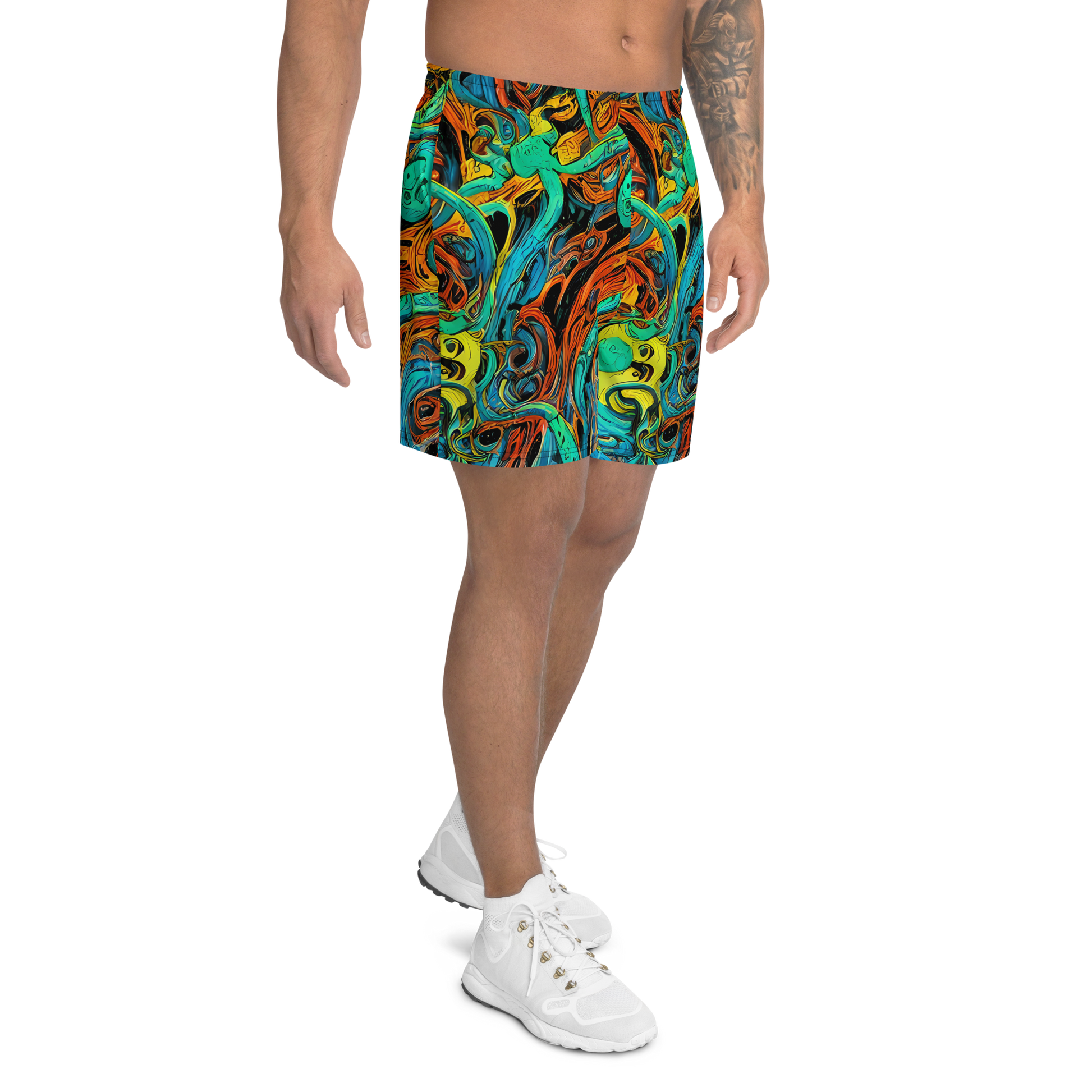 Step into the extraordinary with our Men's Athletic Shorts, featuring the "Flaming Mirage" pattern—a vibrant blend of swirling turquoise, fiery orange, and deep azure that captures the imagination. These shorts are not just about performance; they're a statement piece for the bold and creative. Perfect for those who dare to stand out, whether you're at a summer festival or hitting the gym, these shorts promise to elevate your athletic wardrobe with their dynamic design.