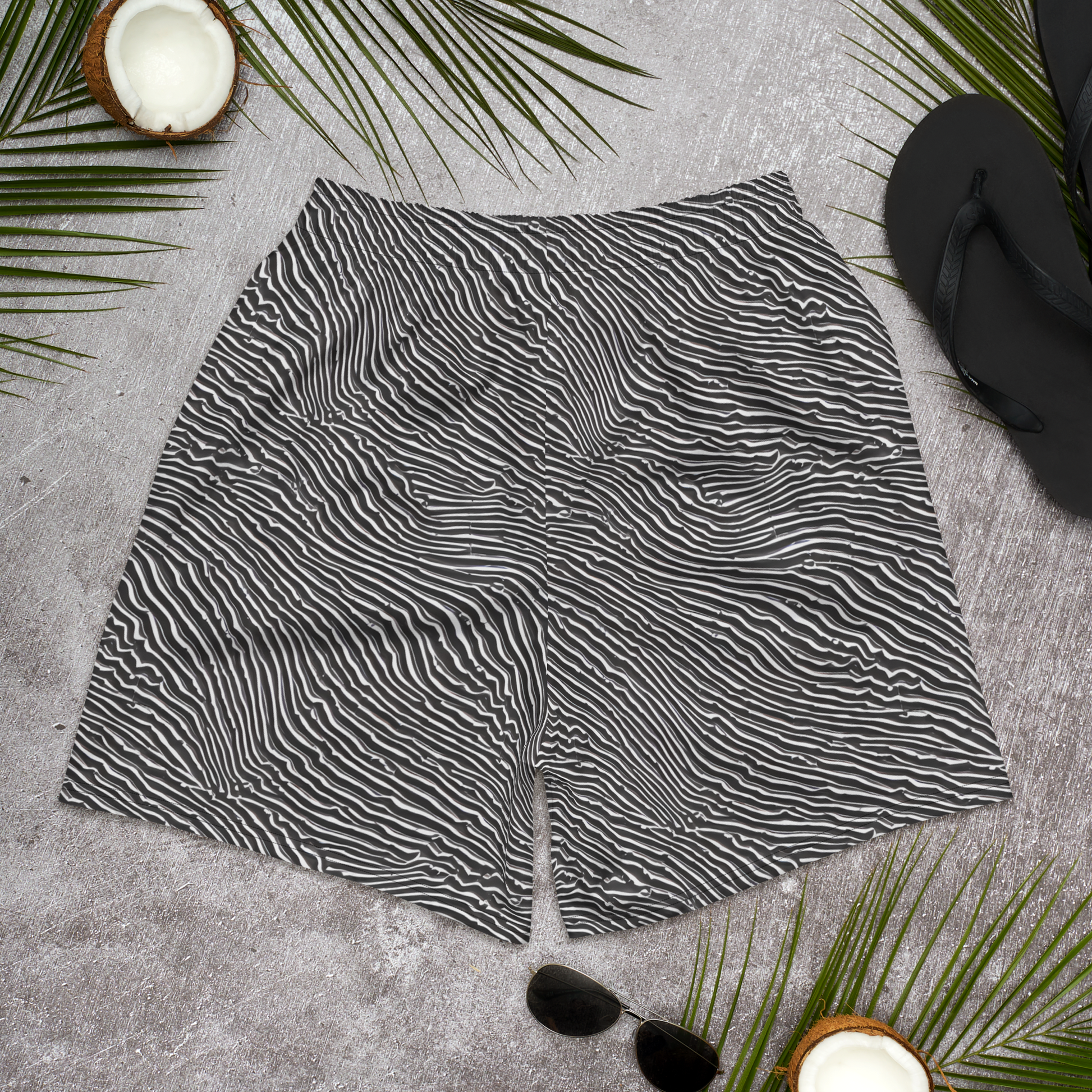 Step up your game with our Men's Athletic Shorts, featuring a mesmerizing pattern of undulating black and white lines that create a dynamic, rhythmic energy. Perfect for making a bold statement at music festivals, art shows, or avant-garde gatherings, these shorts are for the adventurous and creative spirit. Crafted with a four-way stretch microfiber fabric, they ensure breathability and quick drying for maximum comfort. Whether you're hitting the track or the gym, these versatile shorts are designed to meet all your athletic needs.