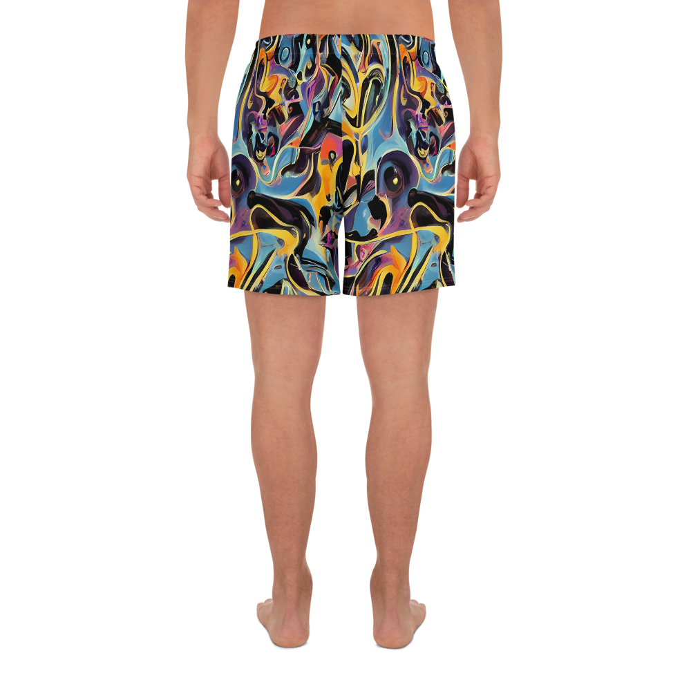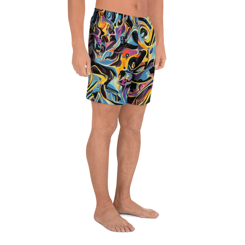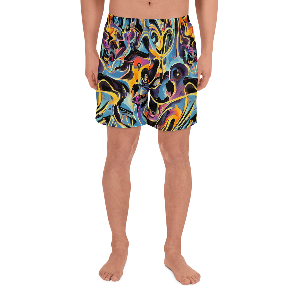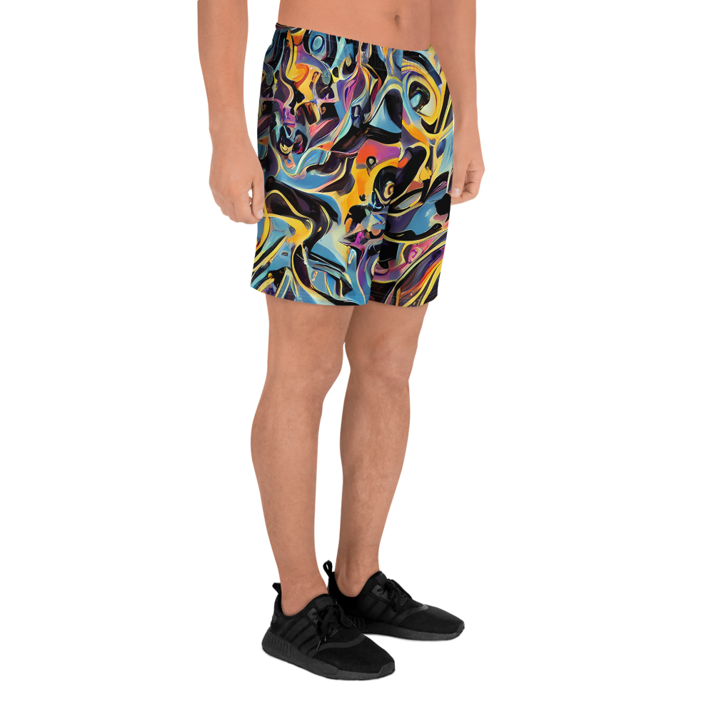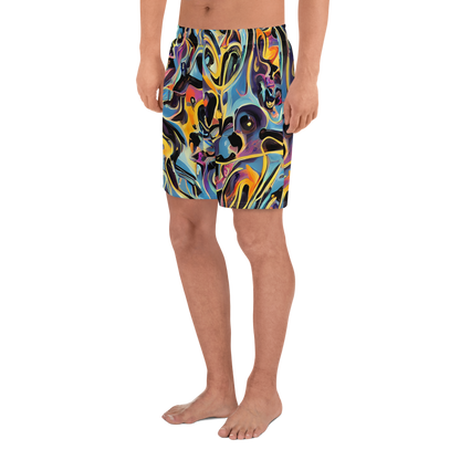 Unleash your inner maverick with our "Newtonian Rhapsody" Men's Athletic Shorts. Immerse yourself in the artistic chaos of deep blues, bold yellows, fiery oranges, and subtle purples, all swirling together in a pattern that captures the essence of avant-garde artistry. These shorts are not just a piece of clothing; they're a statement, a wearable piece of art that brings the provocative elegance and dynamic energy of the art world to your workout routine.