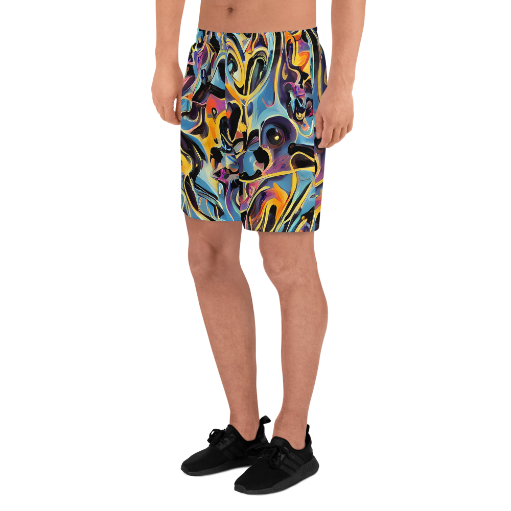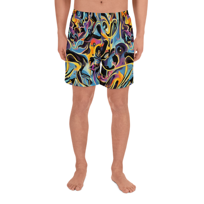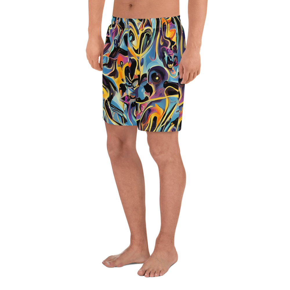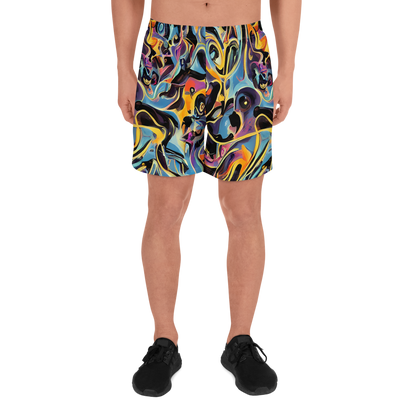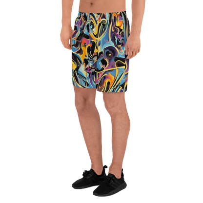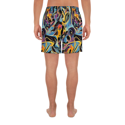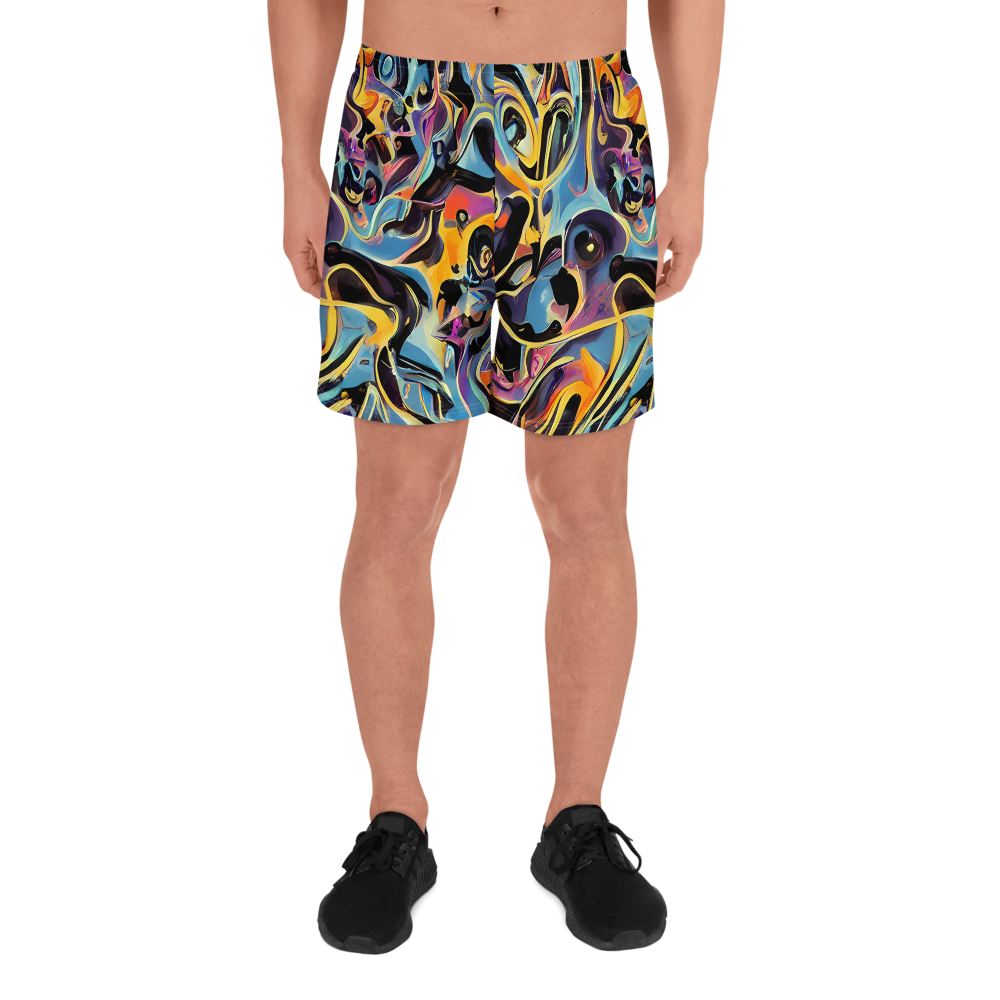 Unleash your inner maverick with our "Newtonian Rhapsody" Men's Athletic Shorts. Immerse yourself in the artistic chaos of deep blues, bold yellows, fiery oranges, and subtle purples, all swirling together in a pattern that captures the essence of avant-garde artistry. These shorts are not just a piece of clothing; they're a statement, a wearable piece of art that brings the provocative elegance and dynamic energy of the art world to your workout routine.