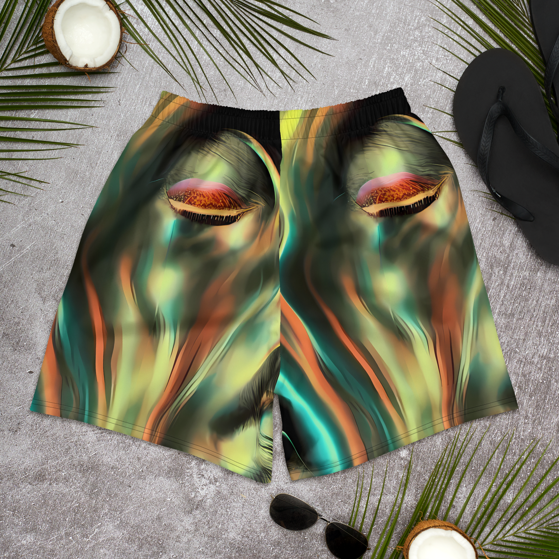 Unleash your inner maverick with our Men's Athletic Shorts, artfully draped in a design that captures the enigmatic fusion of abstract dynamism and classical realism. Swirling with teal, orange, and golden shades, these shorts feature a pattern that evokes the depth and mystery of a masterful portrait, perfect for those who dare to stand out. Embrace the blend of art and athleticism, and make a statement at your next workout or artistic soiree.