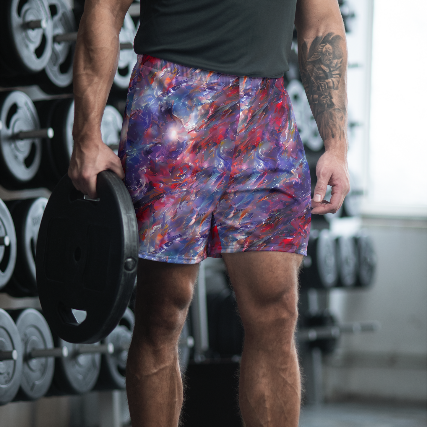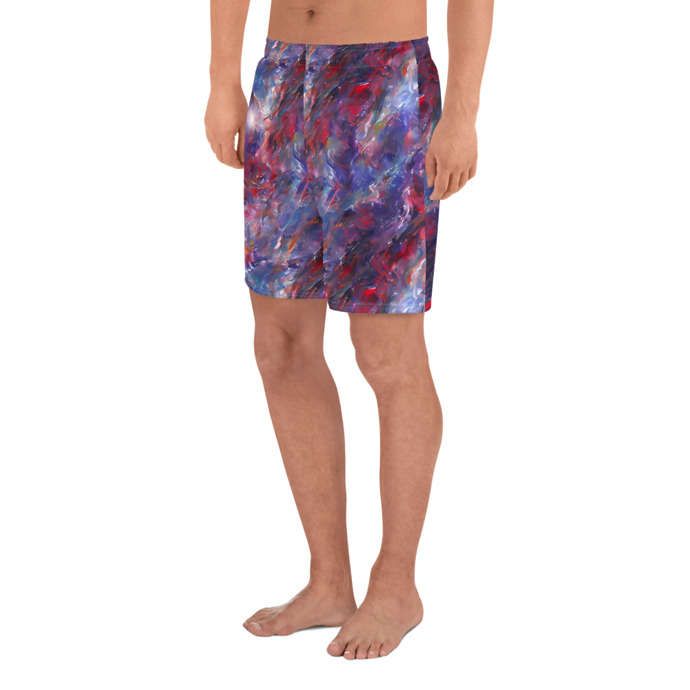 Unleash the essence of a cyberpunk metropolis with our Men's Athletic Shorts, featuring the exclusive "Nihei Nightscape" pattern. Immerse yourself in the electrifying fusion of crimson, indigo, and metallic shades, all captured in the fluid chaos that channels the visionary worlds of Tsutomu Nihei and Eric Wallis. Perfect for those who dare to stand out, these shorts are not just a piece of clothing but a bold statement of artistry and athleticism, ready to turn heads at evening runs or while you're showcasing your skills at the gym.