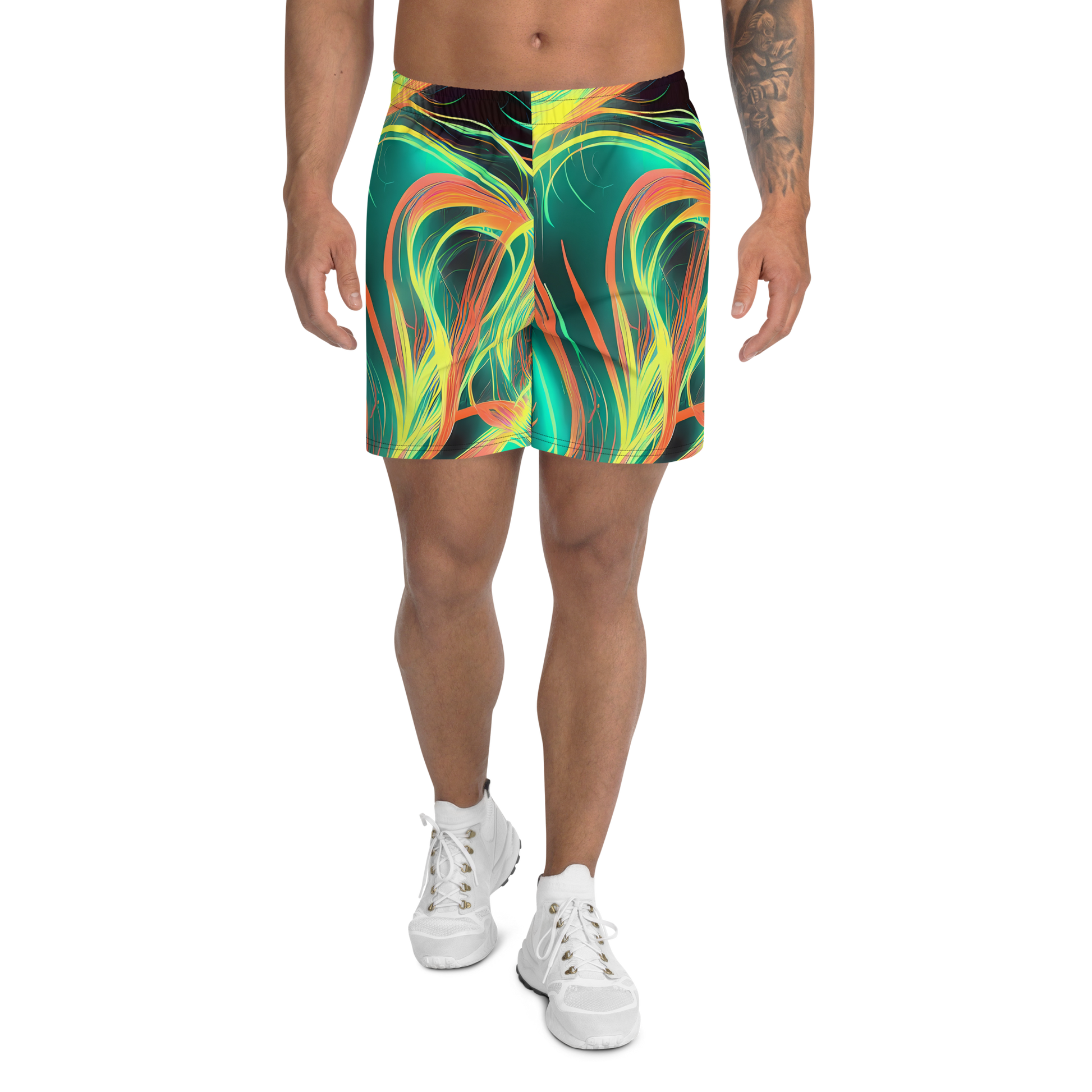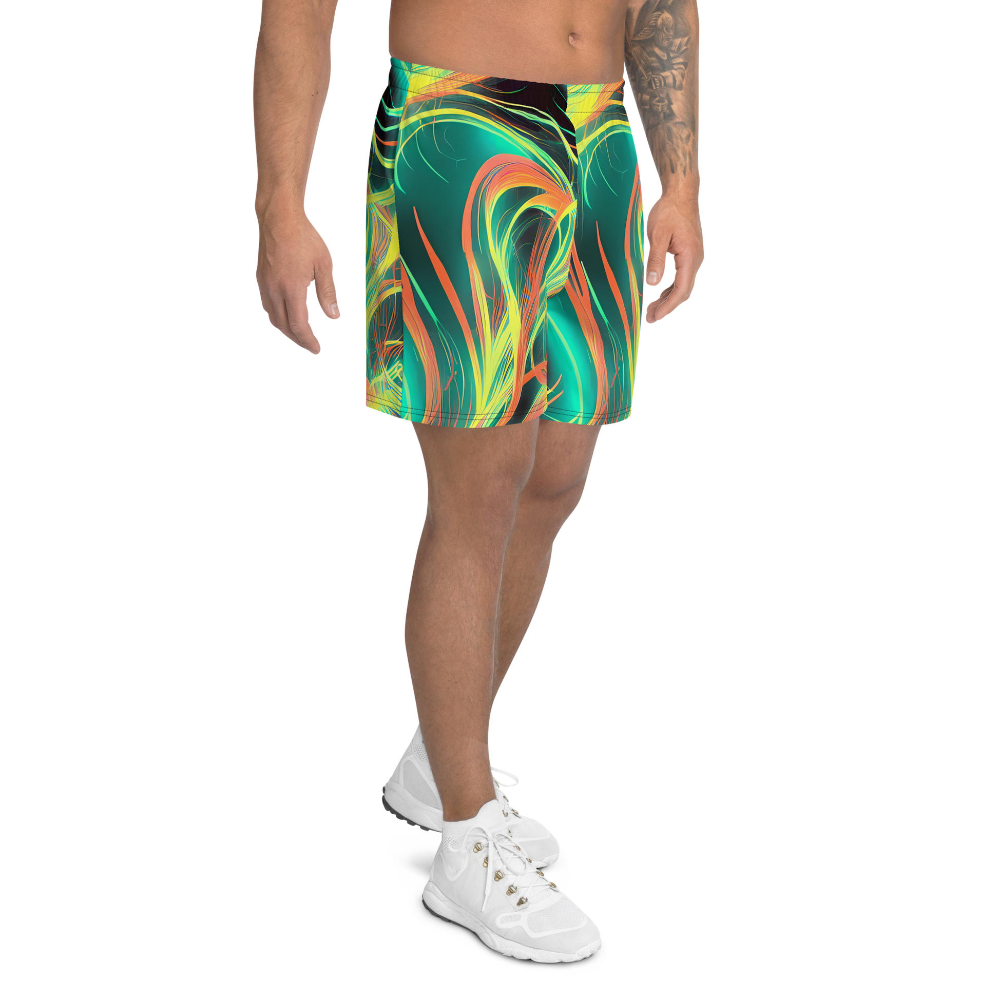 The "Vital Strands" pattern is a vibrant interplay of fluorescent orange and yellow tendrils swirling against a deep teal backdrop, evoking a sense of dynamic energy and organic movement reminiscent of Vito Acconci's explorative forms and Hsiao Ron Cheng's dreamy color palettes. The fluidity of the lines suggests a soft texture, while the contrasting colors create an almost electric vibe, suitable for individuals with a bold, artistic flair. This striking pattern is perfect for summer festivals or creative events, offering a statement piece for those who embrace a vivid and spirited aesthetic.