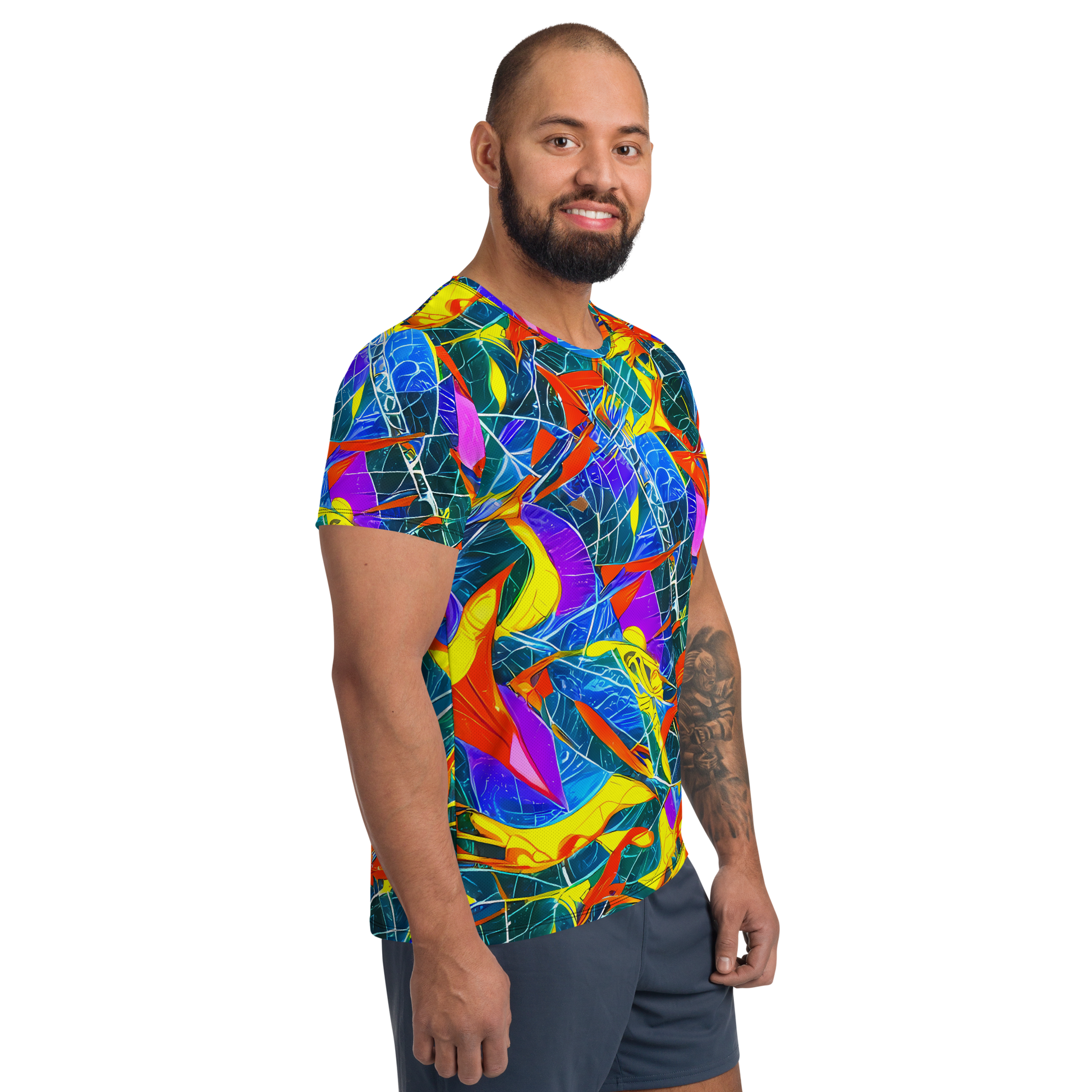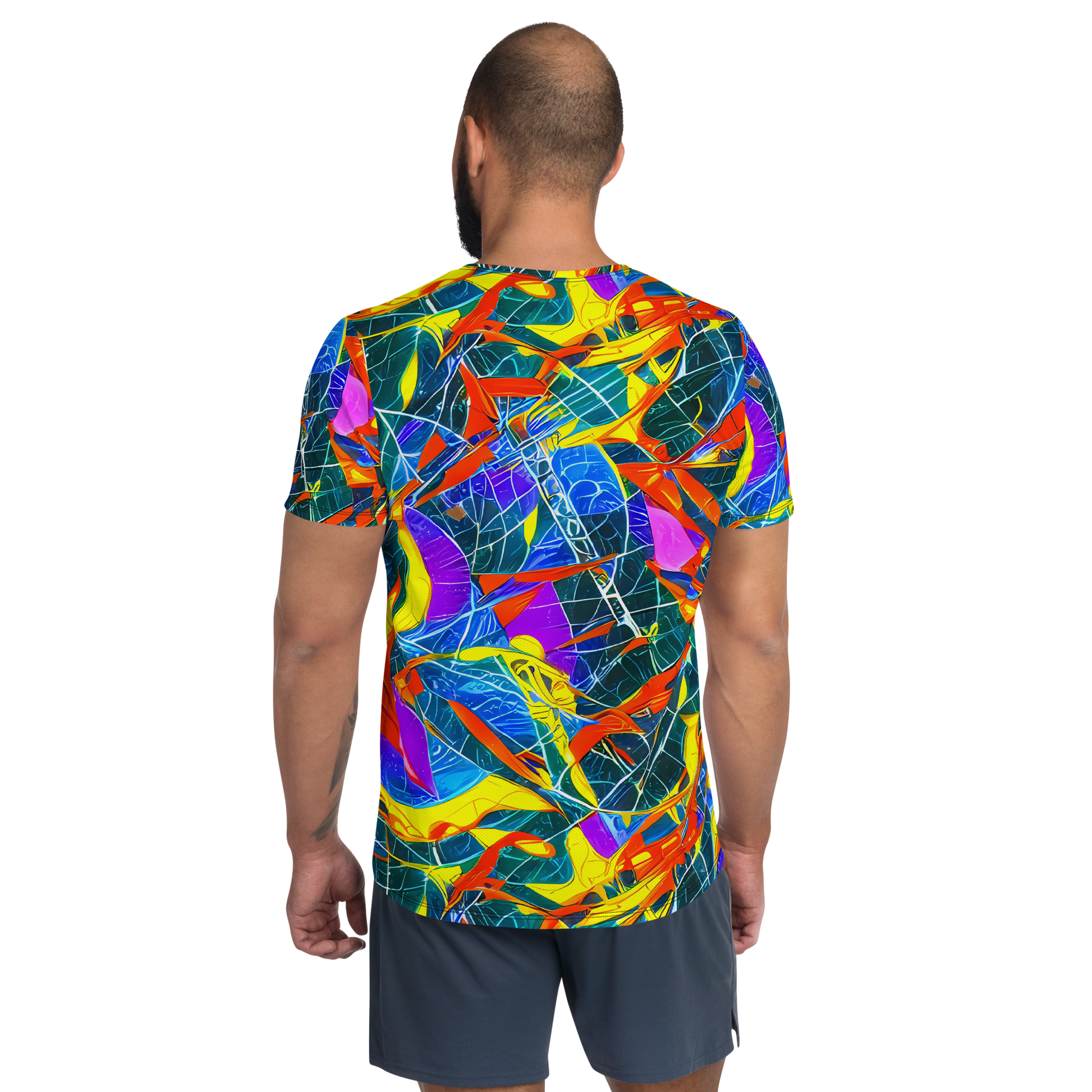 Elevate your workout wardrobe with our Men's Athletic T-Shirt featuring the stunning "Arkhipov Waves" pattern! This vibrant design, inspired by the dynamic expressionism of Abram Efimovich Arkhipov, combines bold strokes of red, yellow, and blue to create a sense of movement that mirrors your own. Perfect for art enthusiasts and fitness lovers alike, this shirt is not just a piece of clothing—it's a statement of style and creativity that will turn heads at the gym or art festival.