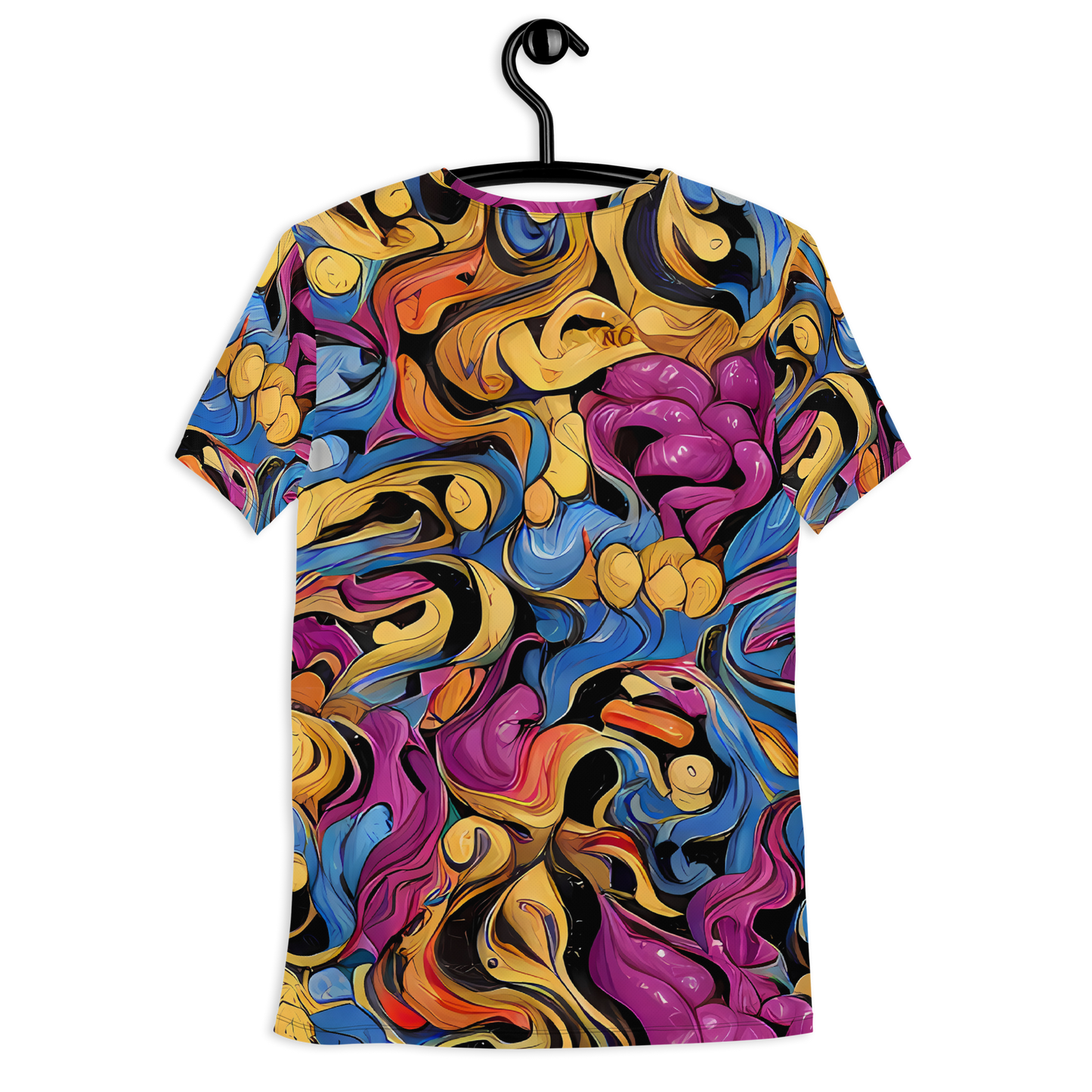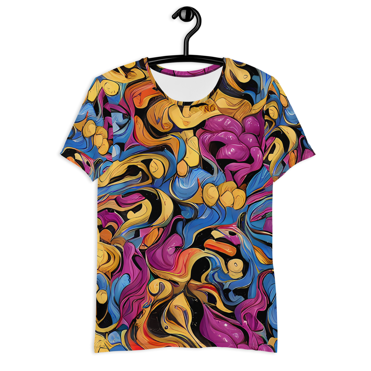 Step into a world where performance meets avant-garde artistry with our Men's Athletic T-Shirt. Swirling with a mesmerizing blend of deep blues, purples, and golds, this top brings a modern baroque flair to your athletic apparel. The dynamic movement and rich texture of the design inspire you to move with confidence and make a bold statement, whether you're at the gym or an art gallery opening. Perfect for the bold and creative spirit, this t-shirt is a wearable piece of art that stands out in any season.
