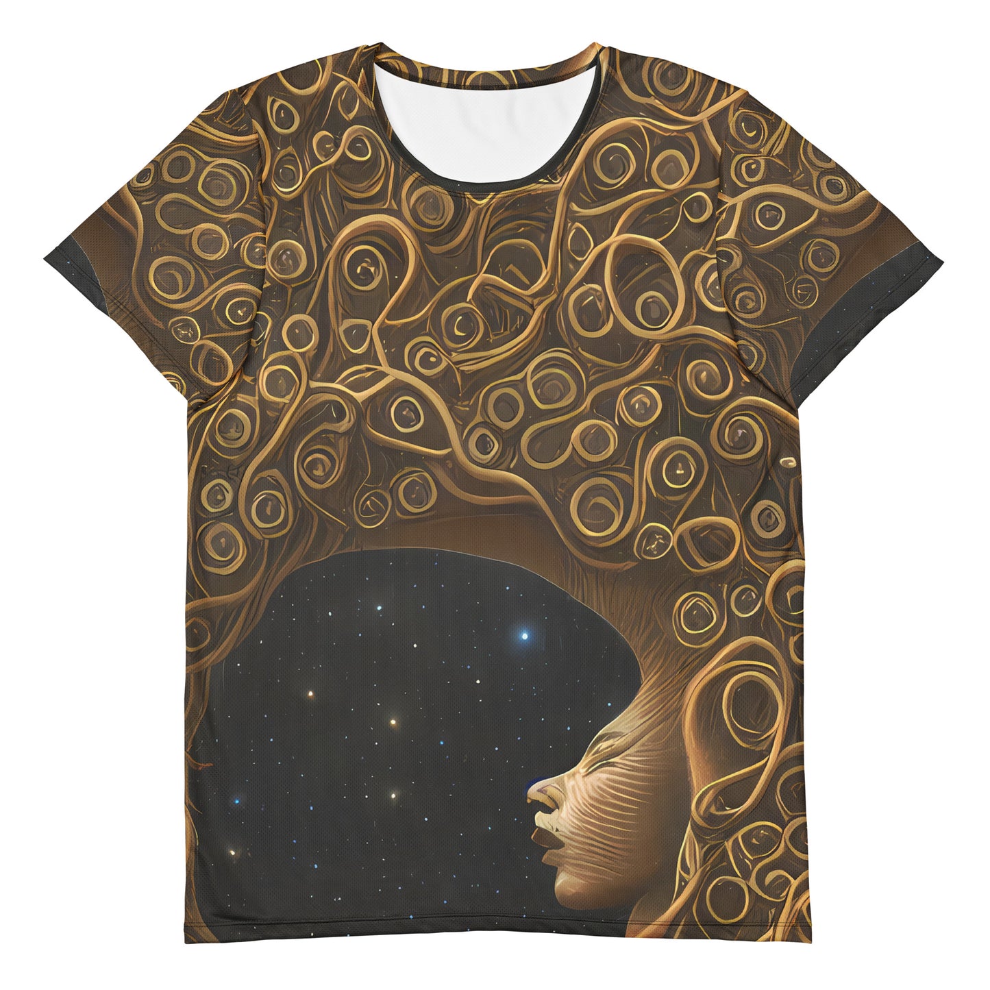Elevate your workout wardrobe with our Men's Athletic T-Shirt featuring the stunning "Ethereal Coils" pattern. This unique design showcases swirling golden spirals against a deep, star-speckled night sky, blending cosmic elegance with bold artistic flair. Perfect for those who appreciate style and performance, this t-shirt not only looks exceptional but is also engineered for peak athletic performance. Experience unparalleled comfort and moisture management as you conquer your fitness goals in a piece that’s as distinct as you are!