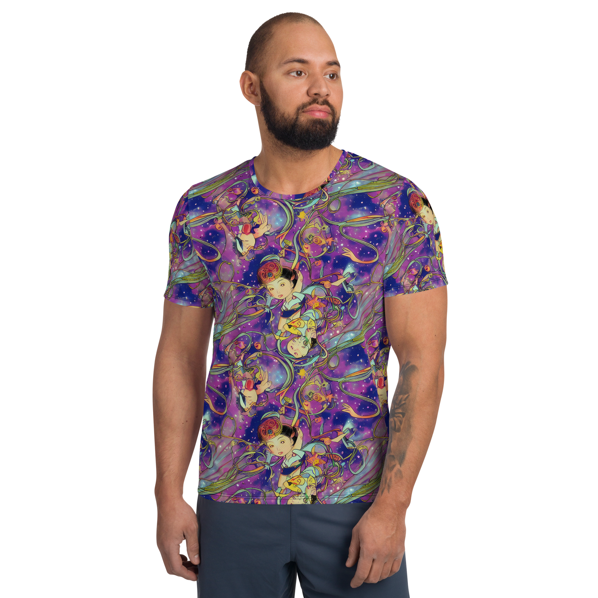 Elevate your workout wardrobe with our Men's Athletic T-Shirt featuring the mesmerizing "Spiral of Stardust" pattern! This unique design captures the essence of swirling cosmic hues, blending vibrant purples, blues, ethereal pinks, and greens into a dreamlike tapestry that inspires movement and freedom. Perfect for those who dare to stand out, this shirt not only looks stunning but also performs at the highest level, ensuring you stay comfortable and focused during every workout. Embrace your adventurous spirit and unleash your full potential!