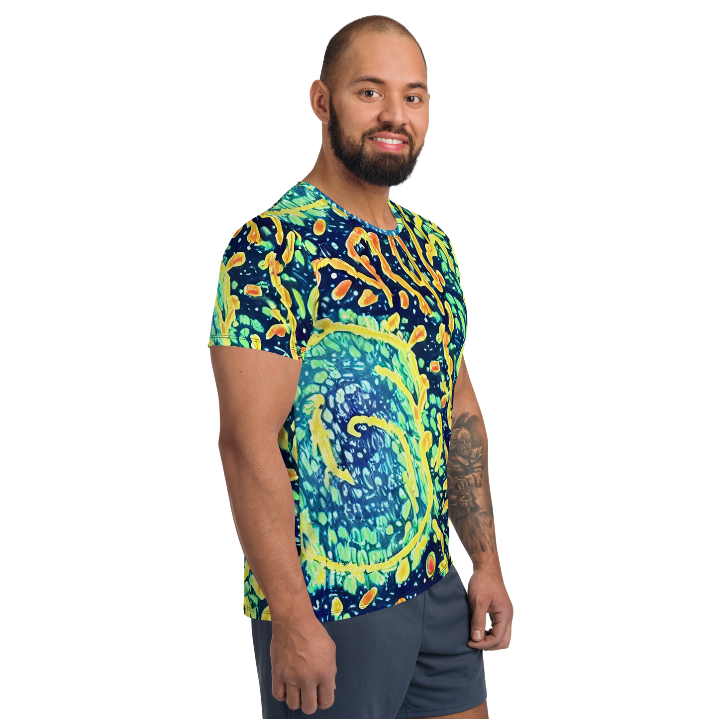 Ignite your workout wardrobe with our "Vortex Glow" Men's Athletic T-Shirt, where performance meets artistry! This eye-catching design features a swirling blend of vibrant yellows and fiery oranges against a cosmic blue backdrop, capturing the dynamic energy of a celestial event. Perfect for those who dare to stand out, this t-shirt not only showcases your bold style but also enhances your performance with advanced moisture-wicking technology. Whether you're hitting the gym or attending a summer festival, this t-shirt is your ultimate companion for both fitness and flair.