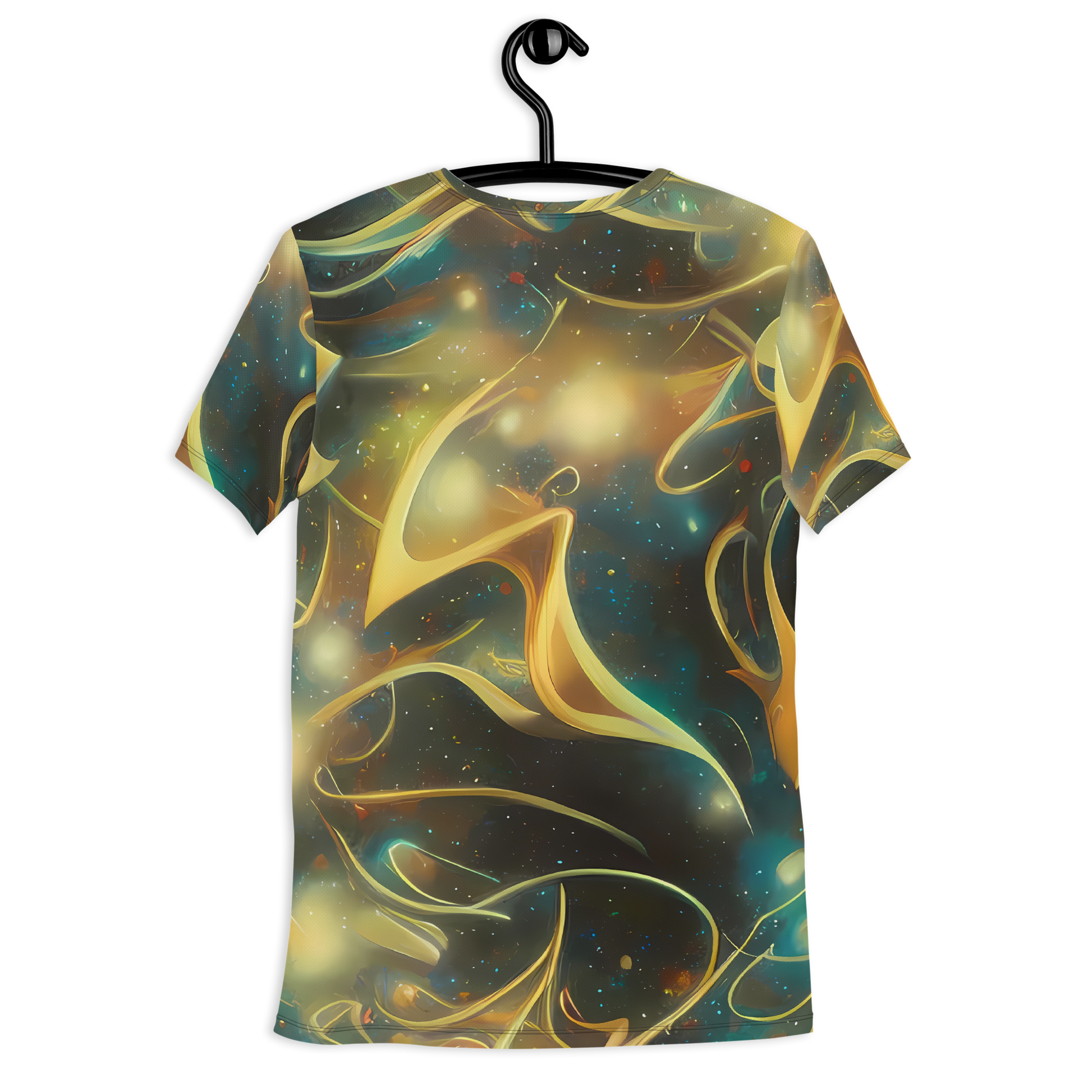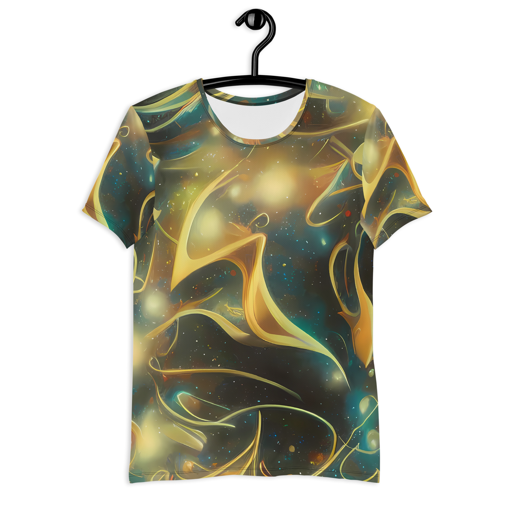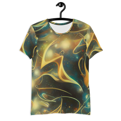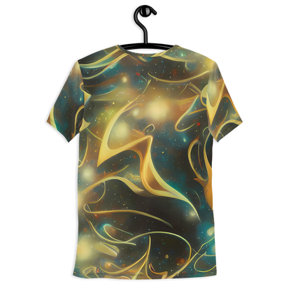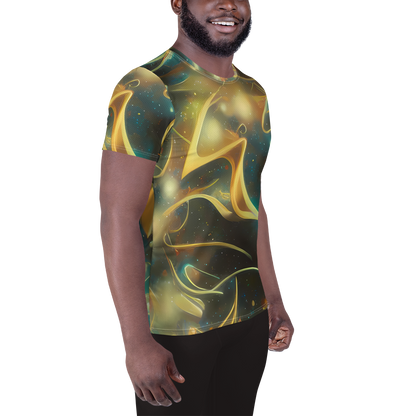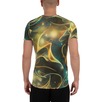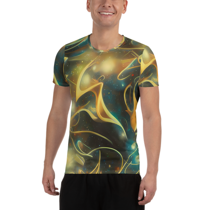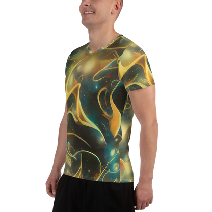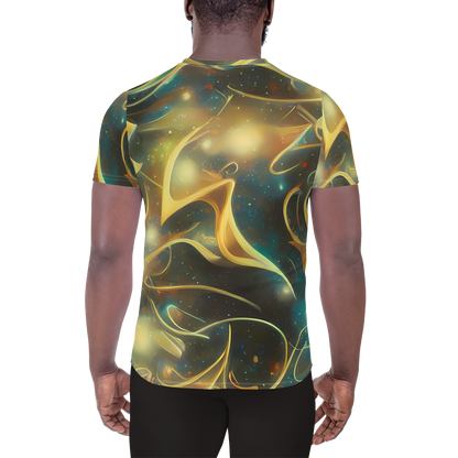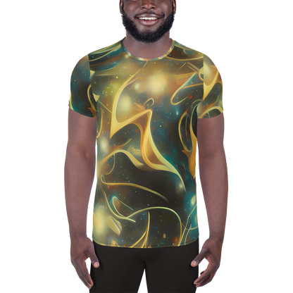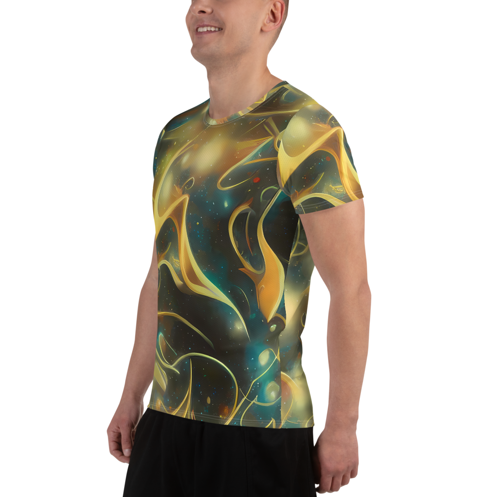 Step into the cosmos with our "Whispering Galaxies" Men's Athletic T-Shirt – where performance meets the enigma of space. The golden swirls and starry backdrop of this unique AI-created design will have you standing out as you push your limits. It's not just a workout tee, it's a wearable piece of art, inspired by the mystique of the universe and the luxury of movement.