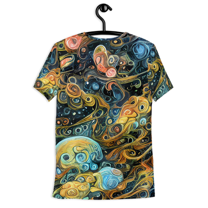 Unveil the celestial charm of your fitness journey with our Men's Athletic T-Shirt, adorned with a design that captures the essence of a cosmic dreamscape. The vibrant swirls and speckles of blues, golds, and pinks intertwine to create an otherworldly pattern that mirrors the night sky's allure. Perfect for those who seek to combine their adventurous spirit with their workout regime, this t-shirt is a celebration of boundless imagination and the mysteries of the universe, tailored to elevate your style quotient in any setting.