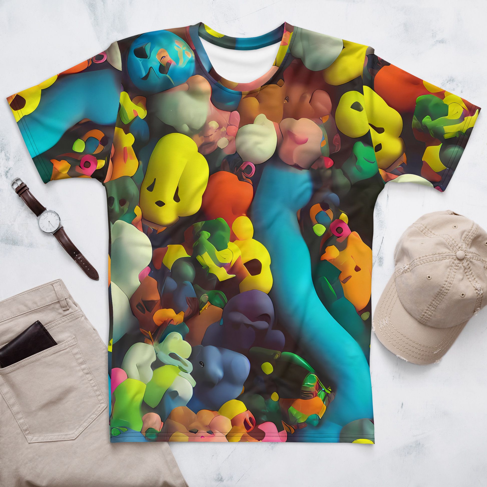 - 🎨 Artistic Flair: Adorn yourself with a tee that features the "Bubble Pop Art" pattern, bursting with vibrant colors and whimsical 3D shapes.