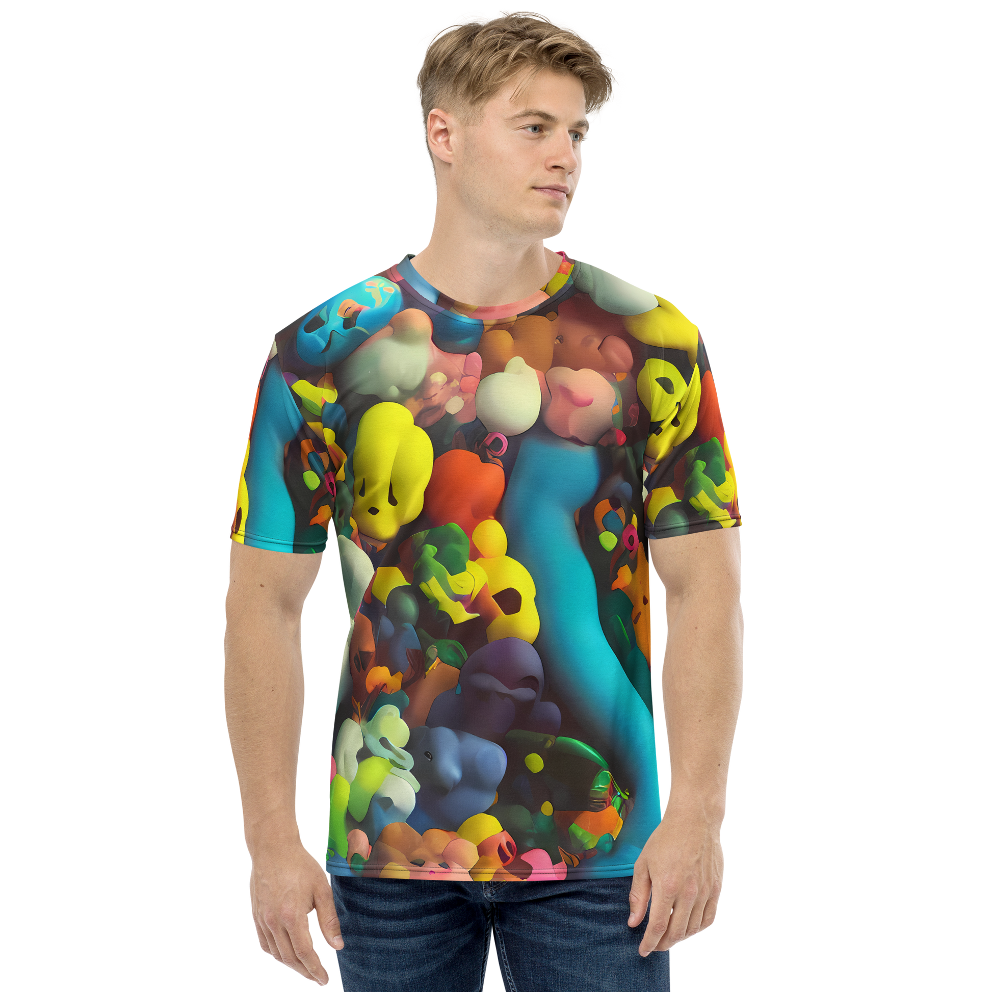 Dive into the exuberance of the "Bubble Pop Art" pattern, where playful 3D bubble shapes and a glossy kaleidoscope of colors bring your wardrobe to life. This men's crew neck T-shirt is a tribute to the joyous spirit of pop art, offering a piece that's as stylish as it is comfortable. Perfect for those who love to stand out, it's your ideal companion for casual outings and lively festivals. Embrace a tee that's as unique and energetic as you are!