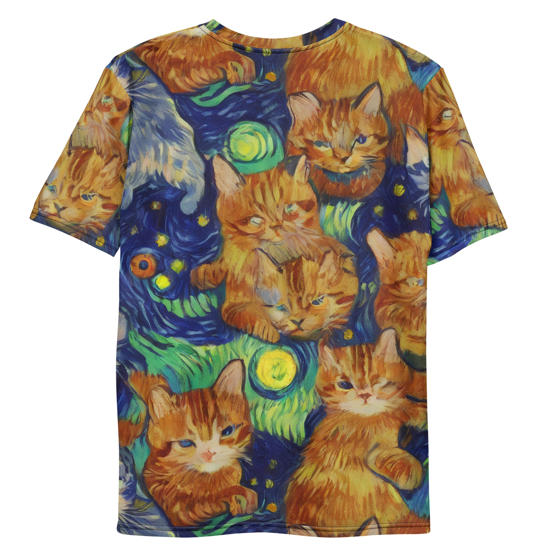 Unleash Your Cosmic Creativity: Introducing the "Celestial Claws" Men's Crew Neck T-Shirt, where art meets fashion in a stunning display of swirling cosmic blues and greens, accented by the warm, fiery hues of ginger and tabby cats. This tee is a wearable masterpiece, designed for the bold and imaginative who dare to embrace the enchantment of the universe. Perfect for gallery openings or chic autumn soirées, it's not just a shirt; it's a statement of your artistic spirit!
