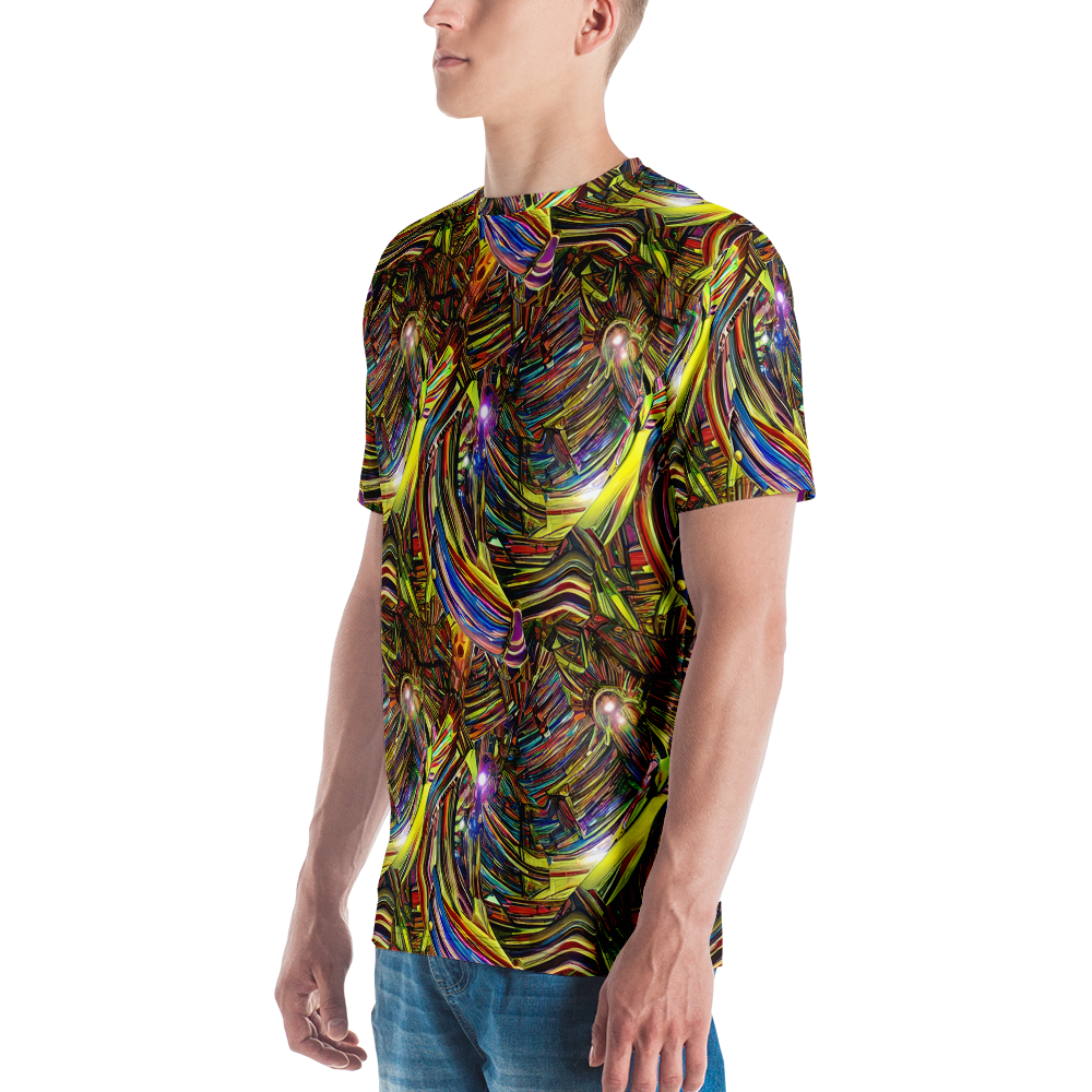 Ignite your wardrobe with a burst of cosmic creativity! This Men's Crew Neck T-Shirt features a vibrant, swirling pattern inspired by the eclectic artistry of Piet Hein Eek and the mesmerizing depths of space. With a kaleidoscope of rich, iridescent colors like electric blues, neon yellows, and cosmic purples, intertwined with dynamic, ribbon-like shapes, this tee is perfect for festival wear, avant-garde events, or making a bold statement in spring and summer. Crafted for the creative, adventurous soul, this shirt lets you express your unique style in unparalleled comfort.