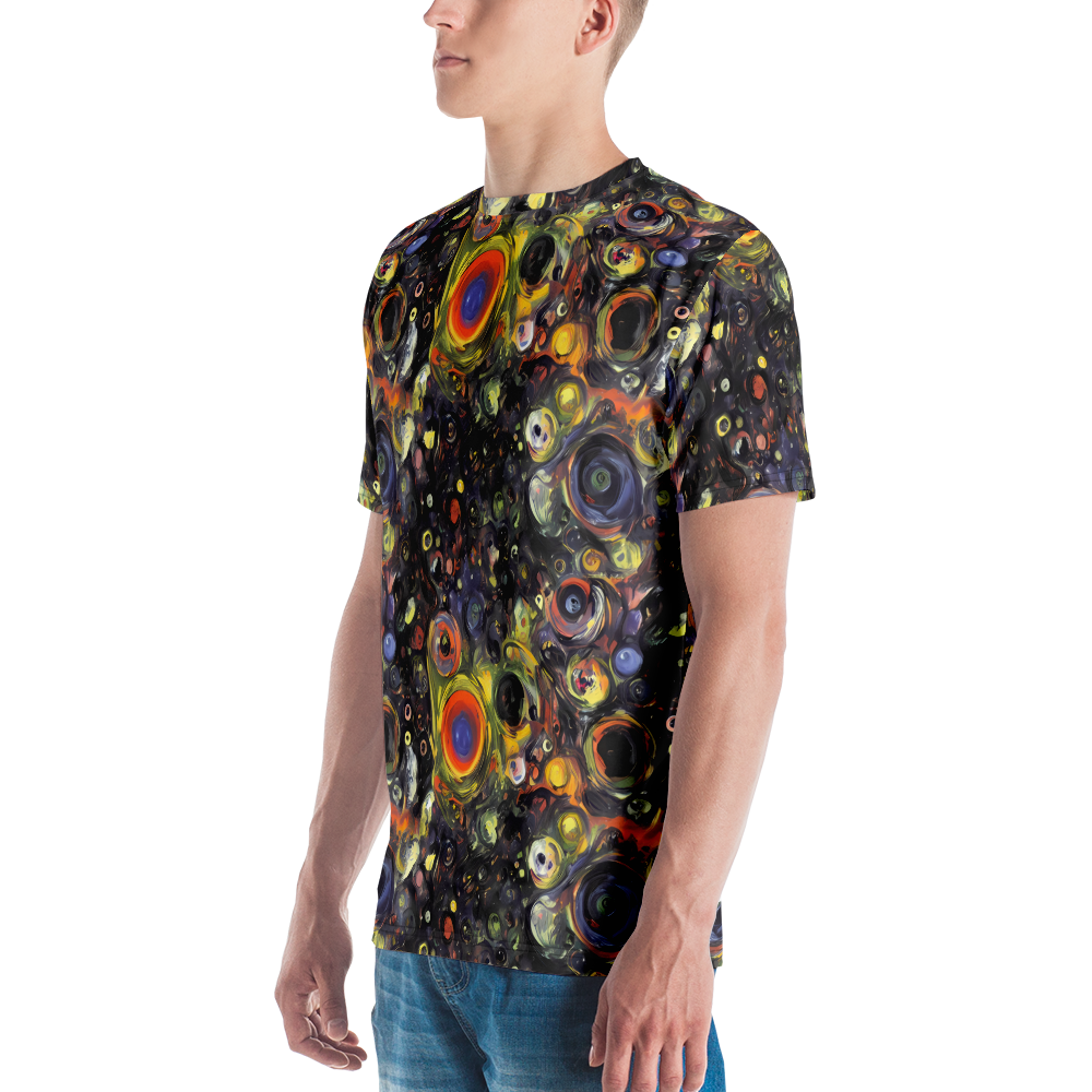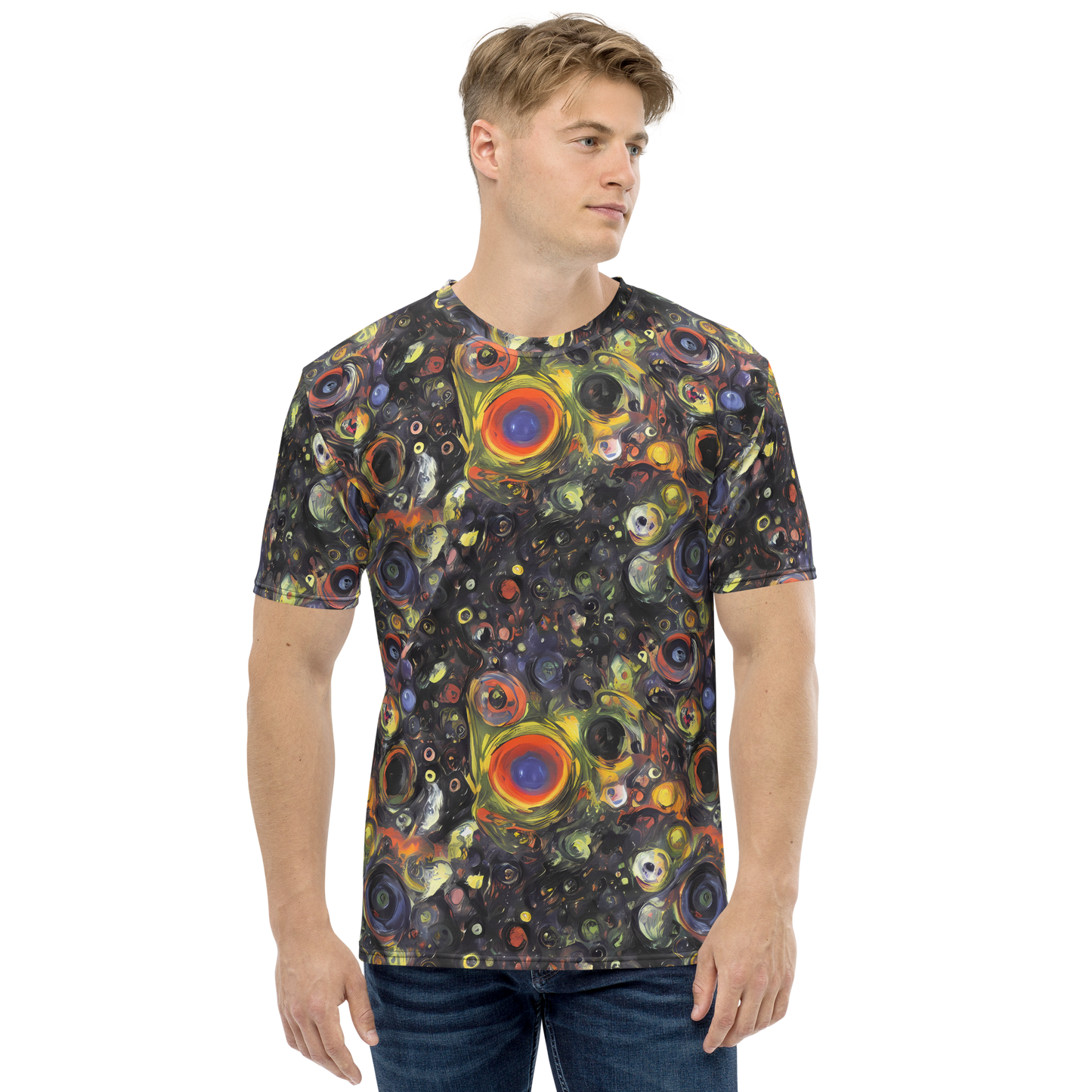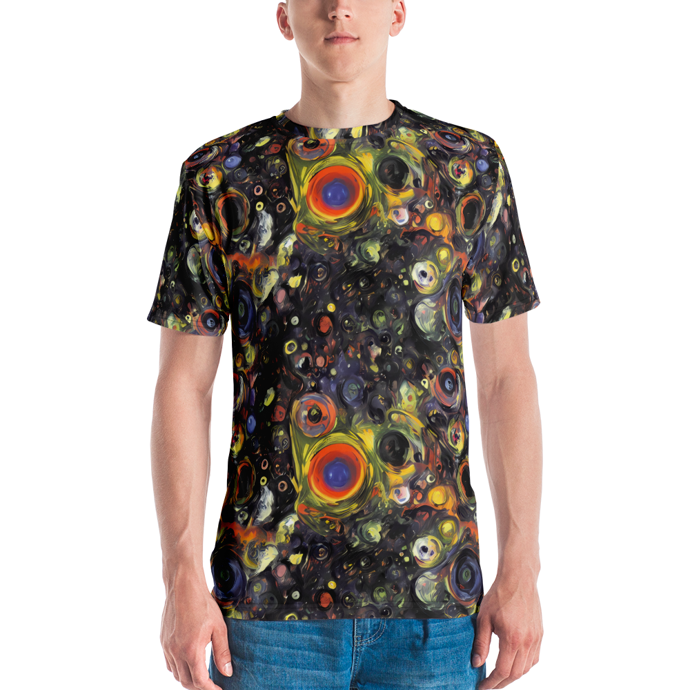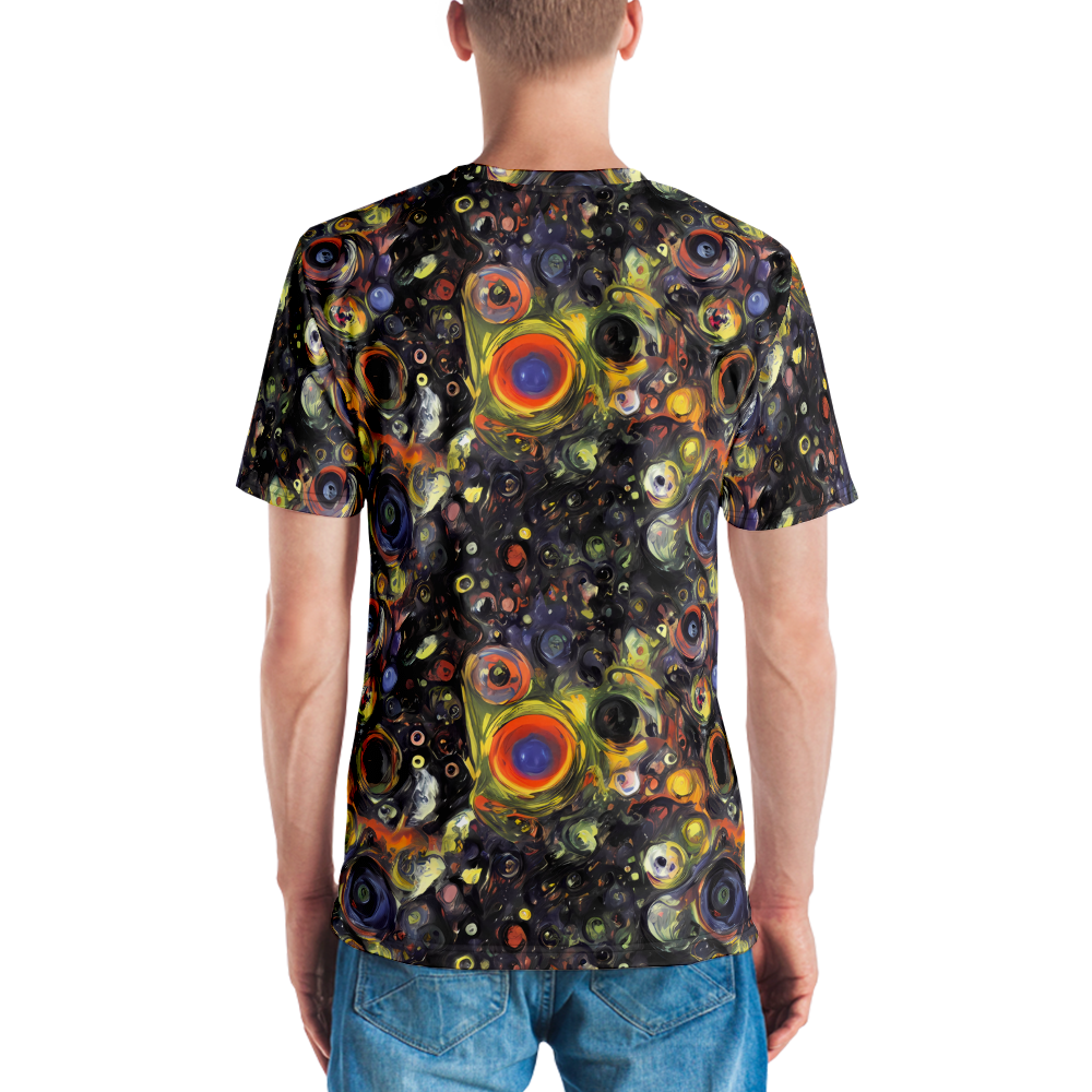 Wrap yourself in the fabric of the cosmos with our latest Men's Crew Neck T-Shirt, featuring a hypnotic swirl of celestial wonders. This shirt is not just a piece of clothing; it's a conversation starter, a wearable piece of art that captures the boundless beauty of the universe. With fiery oranges, deep blues, and vivid reds set against the infinite dark, this tee is for those who carry the spirit of adventure in their souls and aren't afraid to stand out.