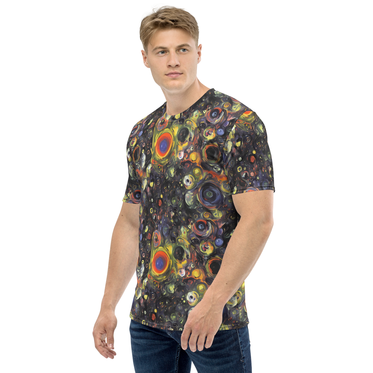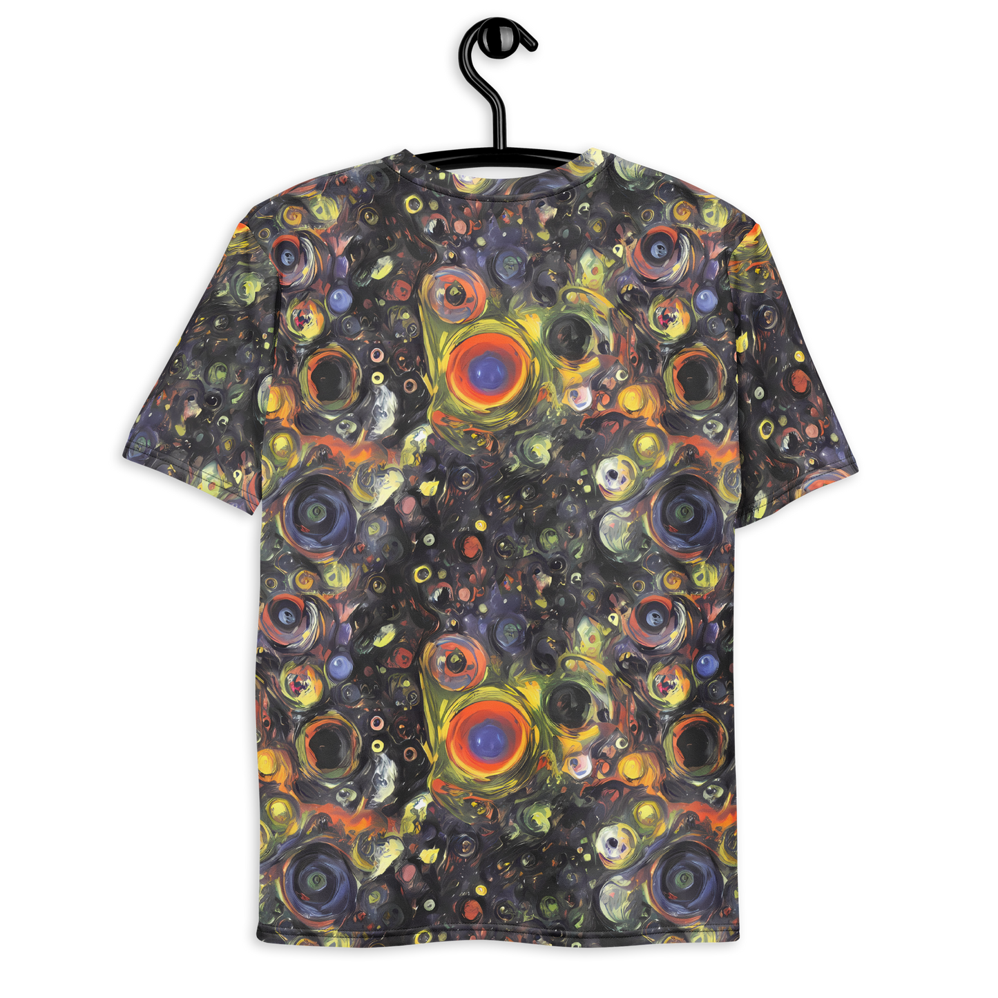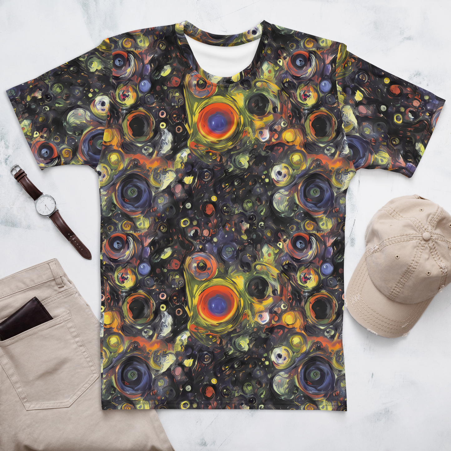 Wrap yourself in the fabric of the cosmos with our latest Men's Crew Neck T-Shirt, featuring a hypnotic swirl of celestial wonders. This shirt is not just a piece of clothing; it's a conversation starter, a wearable piece of art that captures the boundless beauty of the universe. With fiery oranges, deep blues, and vivid reds set against the infinite dark, this tee is for those who carry the spirit of adventure in their souls and aren't afraid to stand out.