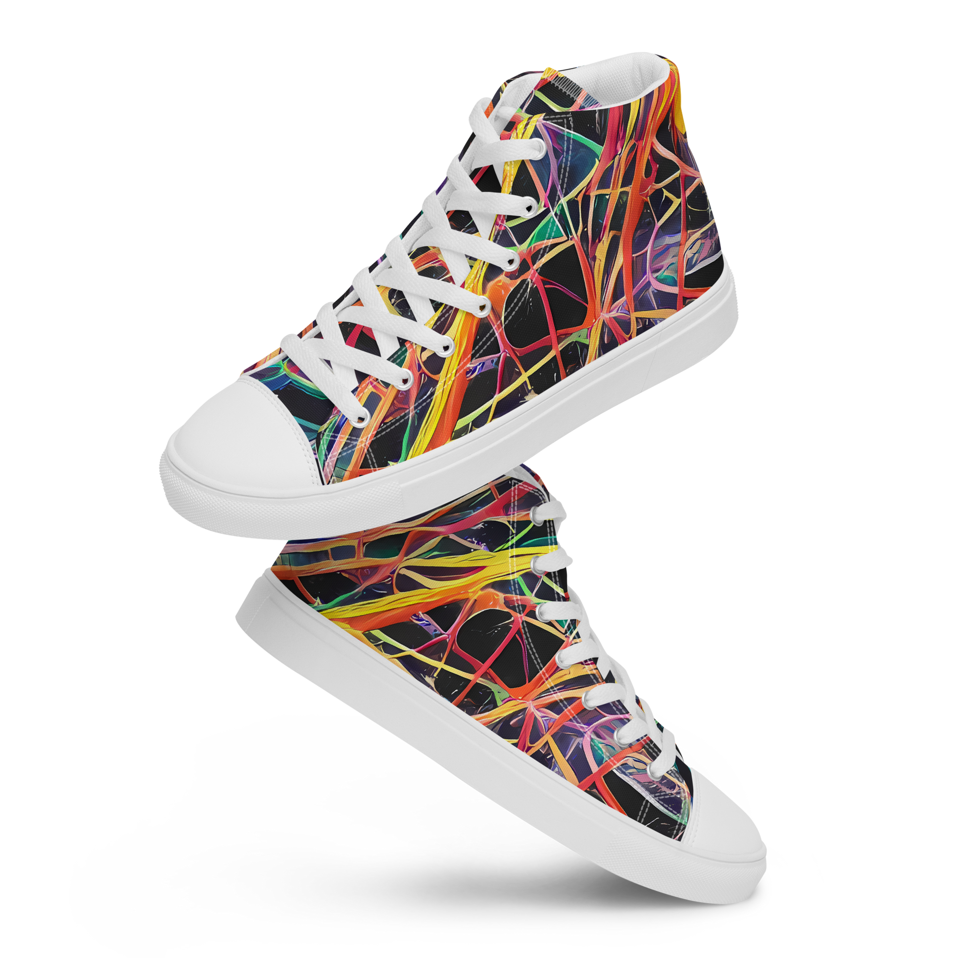 Unleash the essence of artistic expression with our Men's High Top Canvas Shoes, featuring an exclusive pattern that captures the raw energy and vibrant hues of a masterful canvas. Swirls of fiery oranges, vivid yellows, and cool blues dance across a deep black background, creating a visual spectacle that commands attention and celebrates the audacious spirit of artistry. Ideal for art aficionados and the style-savvy, these shoes are a statement piece for any season, ready to turn heads at creative events or casual outings alike.