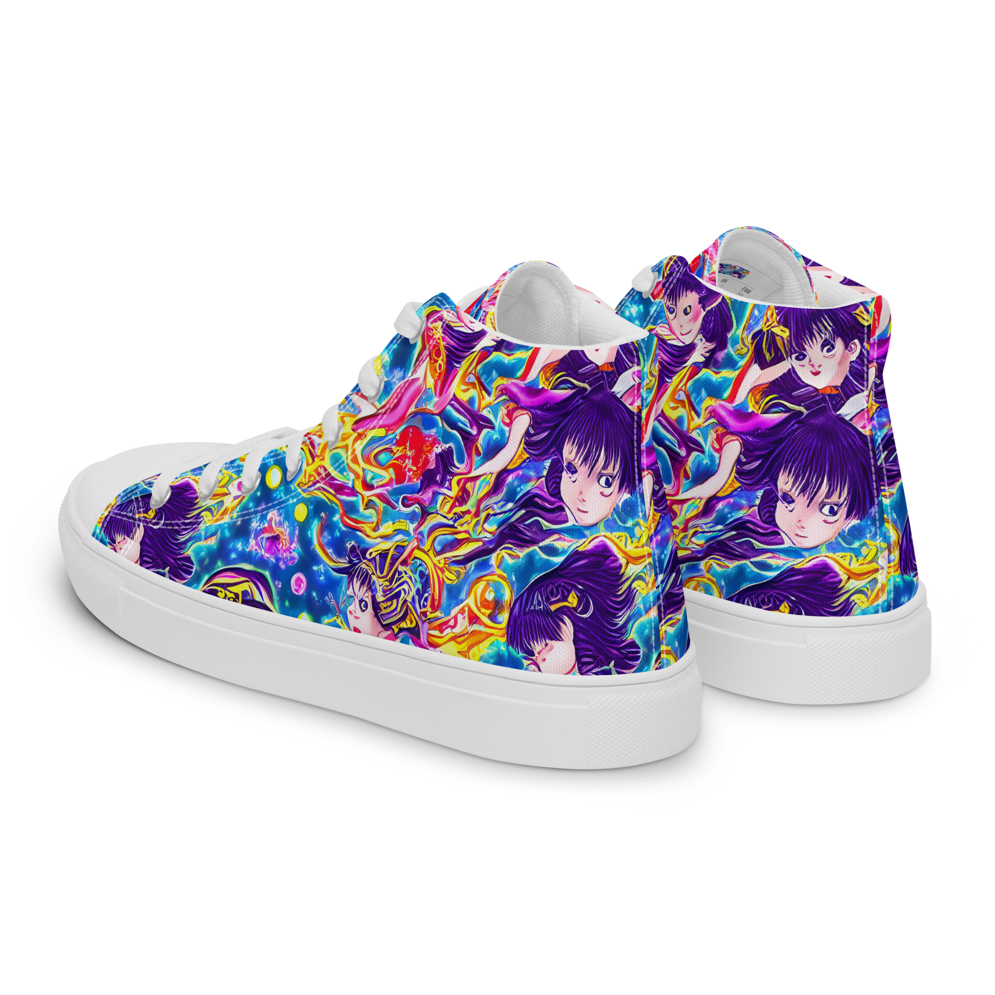 Discover the extraordinary with our Men's High Top Canvas Shoes, featuring the mesmerizing "Aquatic Whim" pattern. This vibrant design, with its swirling purples, electric blues, and neon yellows, transforms each step into a journey through an ethereal underwater universe. Perfect for bold personalities, these shoes are a statement piece for music festivals, art galleries, or avant-garde fashion events. Handmade with precision, they offer unparalleled comfort and style, ensuring you stand out in every crowd.