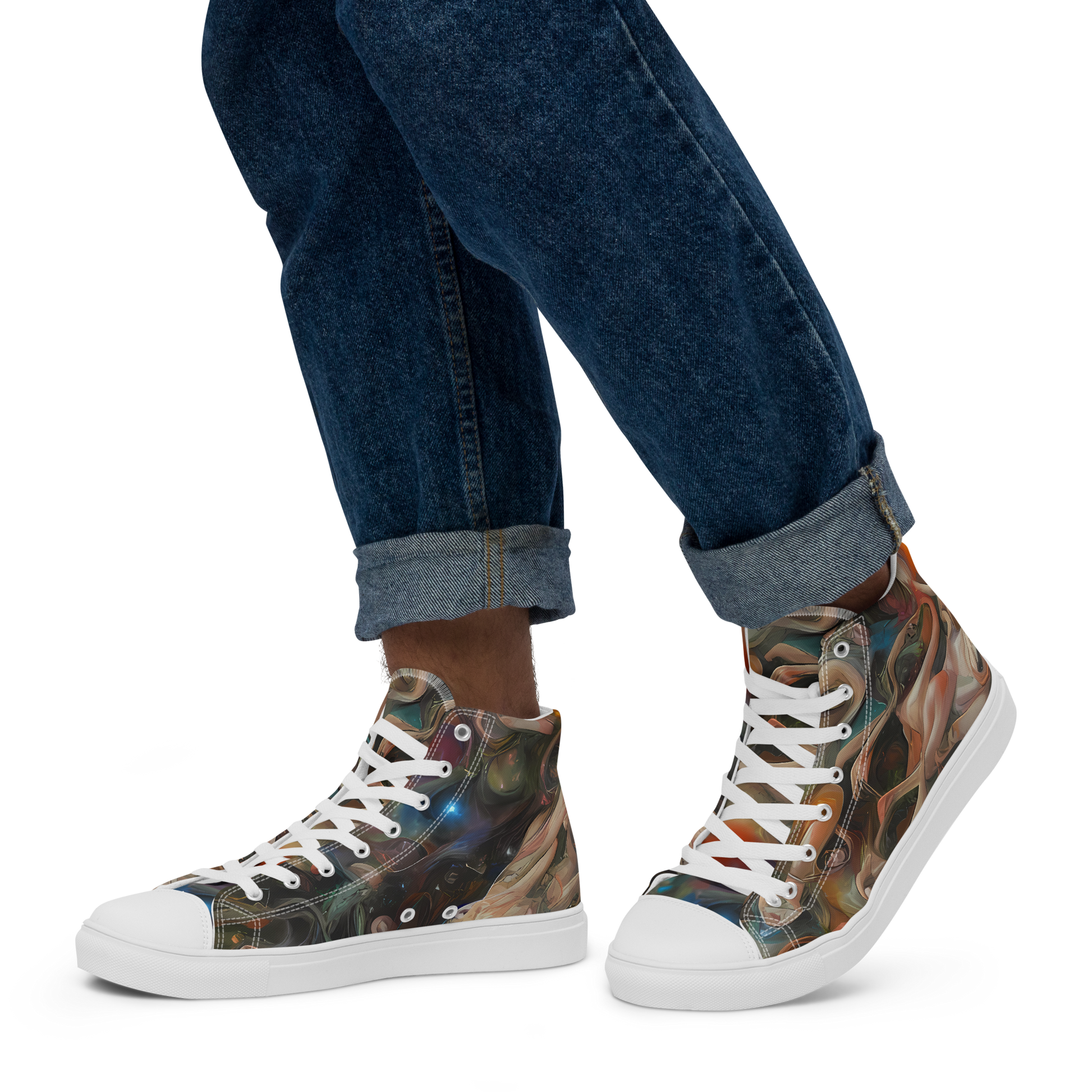 Immerse yourself in the opulent energy of art with our Men's High Top Canvas Shoes featuring the exclusive "Copper Swirl" pattern. This design captures the essence of a masterpiece, with warm copper tones and cool emerald hues that dance together in a symphony of abstract shapes, evoking the spirited brushwork of Cecily Brown and the lustrous metallic textures akin to Brad Kunkle. These shoes are a celebration of luxury and avant-garde style, perfect for making a bold statement at any high-profile art event or sophisticated evening soiree. Embrace the autumnal vibe and express your artistic side with every step.