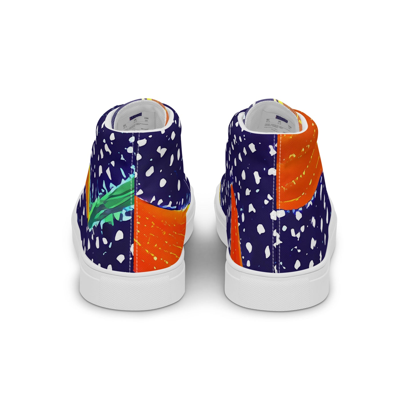 Step into the wild with our "Jungle Zephyr" High Top Canvas Shoes, where vibrant emerald greens and fiery oranges dance against a deep indigo backdrop. This eye-catching pattern captures the essence of untamed nature, making each pair a bold statement piece for art galleries or urban adventures. Handcrafted for the daring, these shoes blend artisan craftsmanship with contemporary style, ensuring you stand out in every setting.