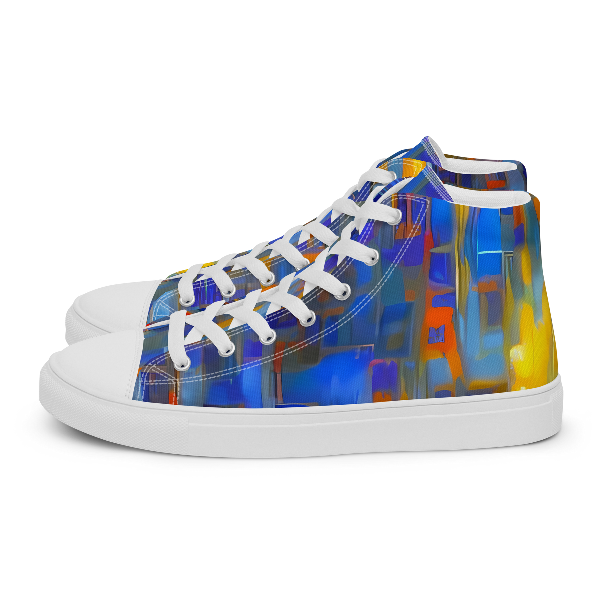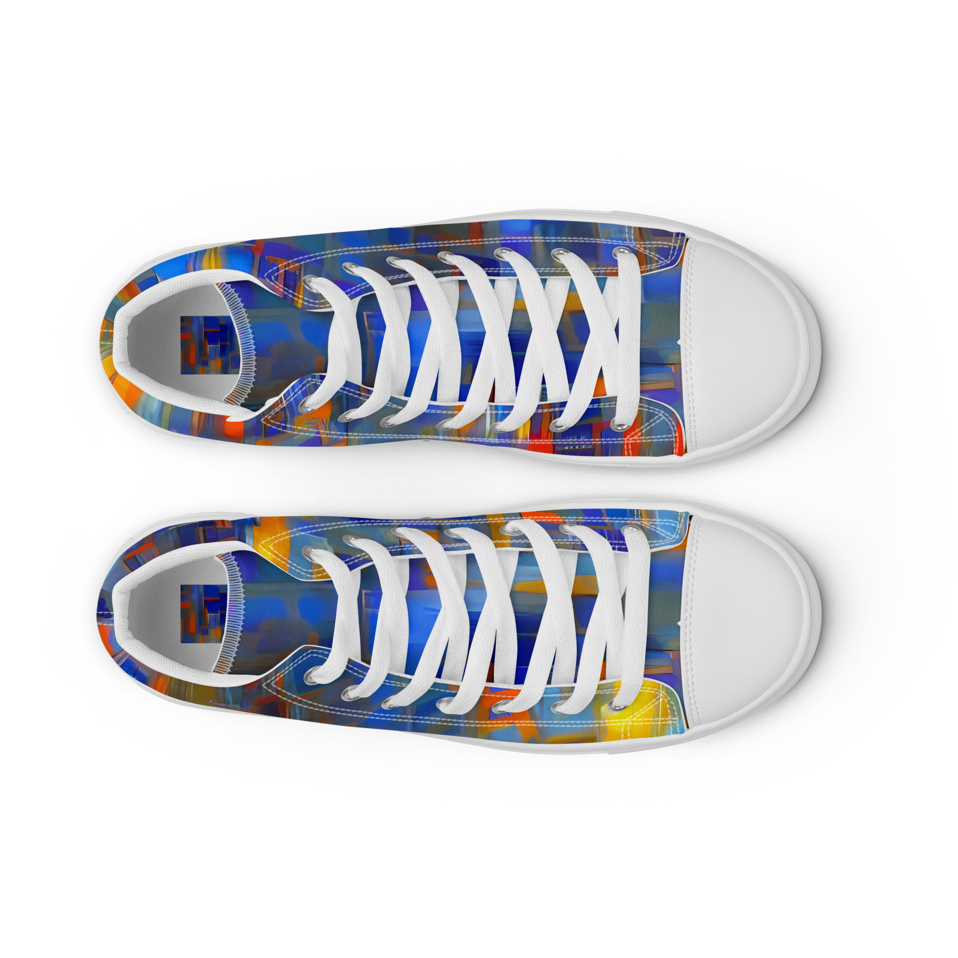 Unleash your artistic spirit with our Men's High Top Canvas Shoes, featuring the exclusive "Neoplastique Flow" pattern. This design merges abstract geometry with fluid artistry, showcasing bold rectangles and squares in vibrant blues, oranges, and hints of crimson. Inspired by the iconic works of Piet Mondrian and Eric Wallis, these shoes are a dynamic statement piece, perfect for art enthusiasts and fashion-forward individuals. Crafted for those who dare to stand out, each step in these high tops is a stride in style and comfort.
