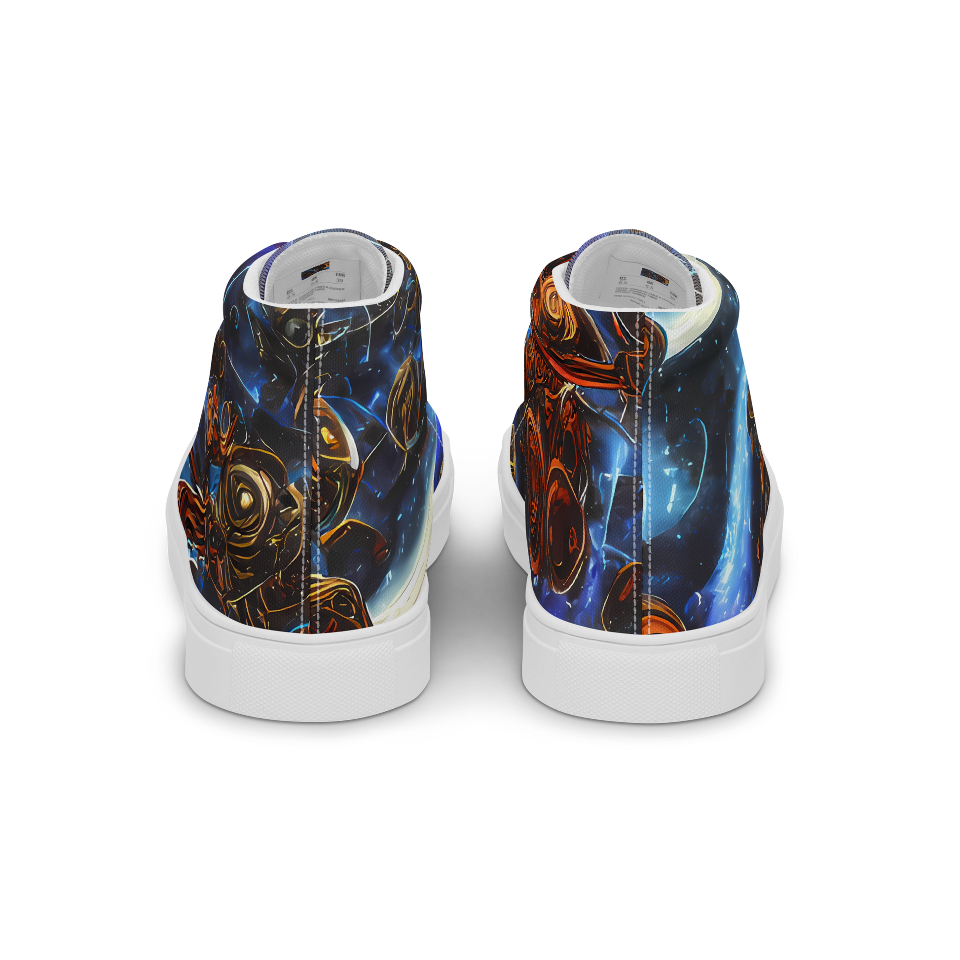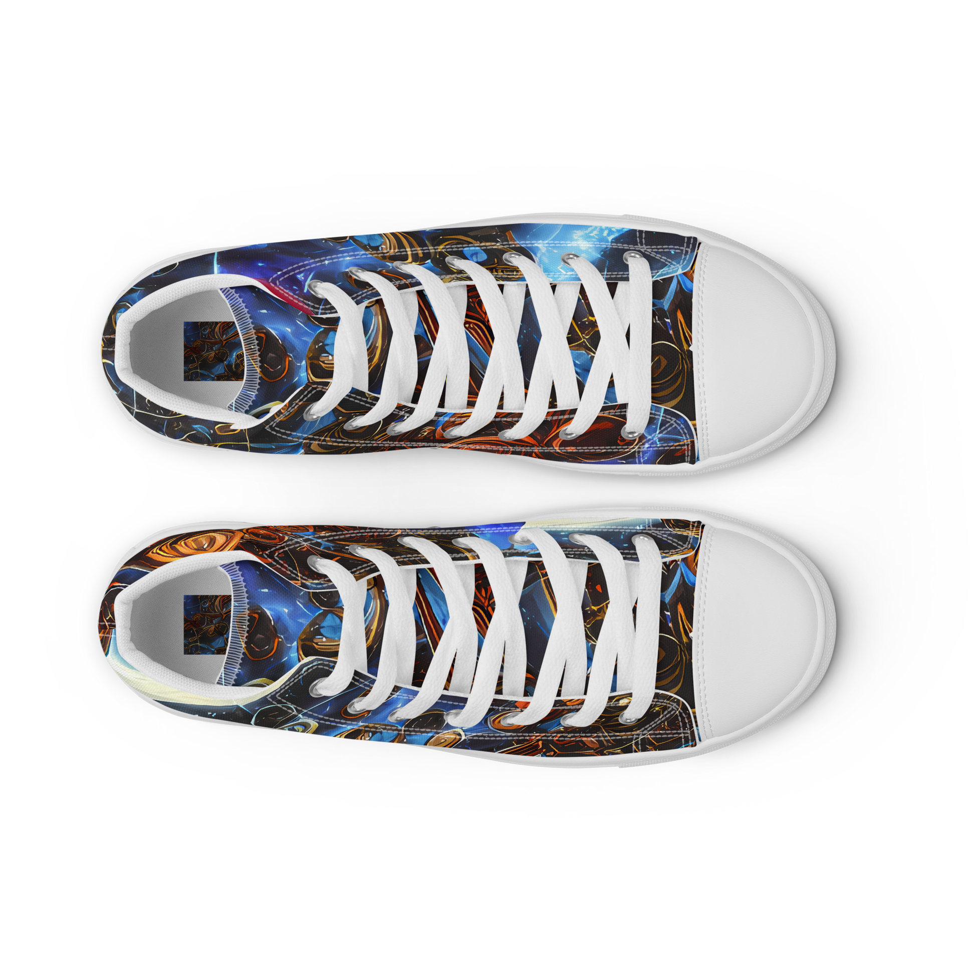 Step into the cosmos with our custom-designed High Top Canvas Shoes, featuring the striking "Pimenov's Cosmos" pattern. This vibrant tapestry of blues, golds, and reds captures the essence of celestial wonder, making each pair a statement piece for the bold and imaginative. Perfect for both gala events and creative gatherings, these shoes blend artisan craftsmanship with cutting-edge style, ensuring you stand out in every season.