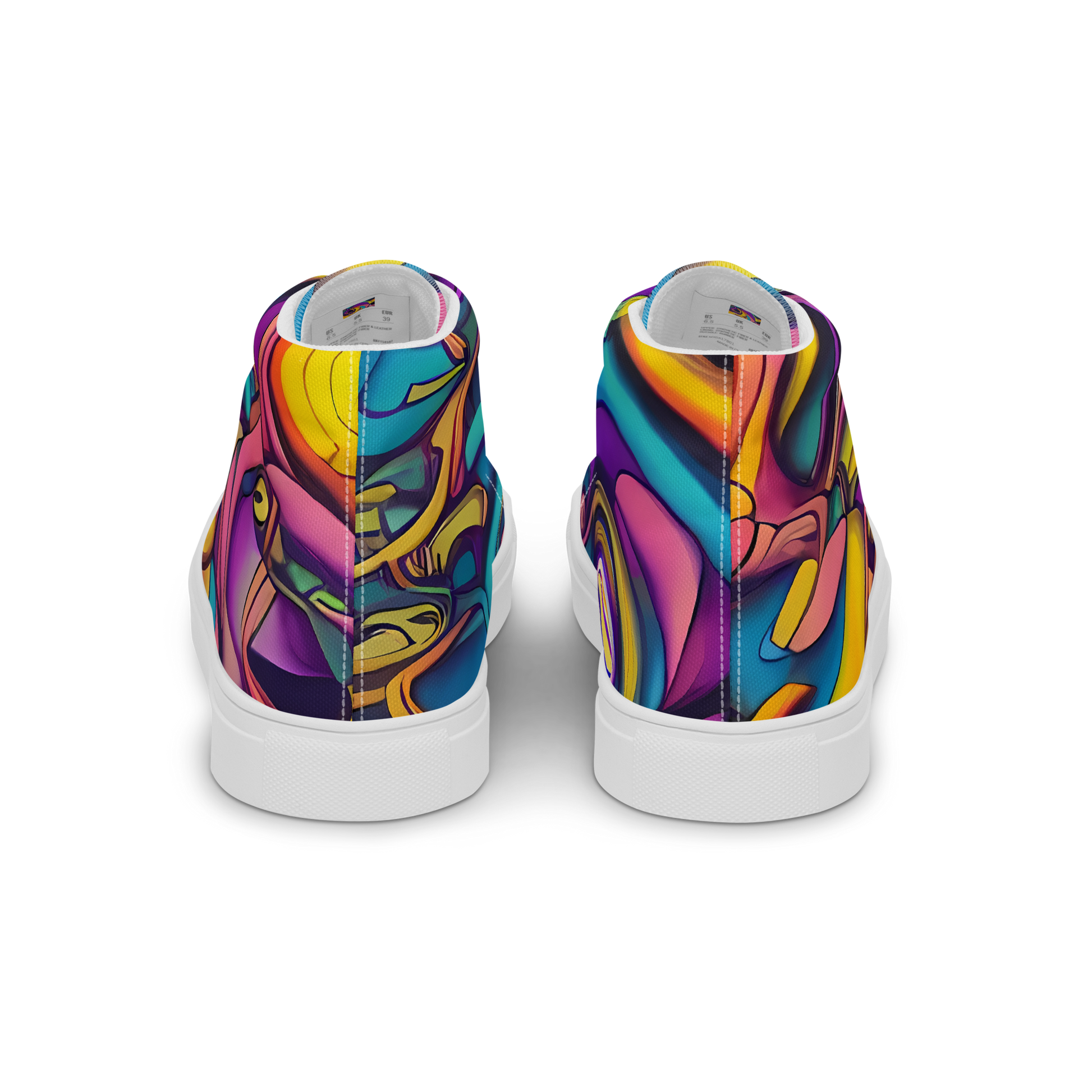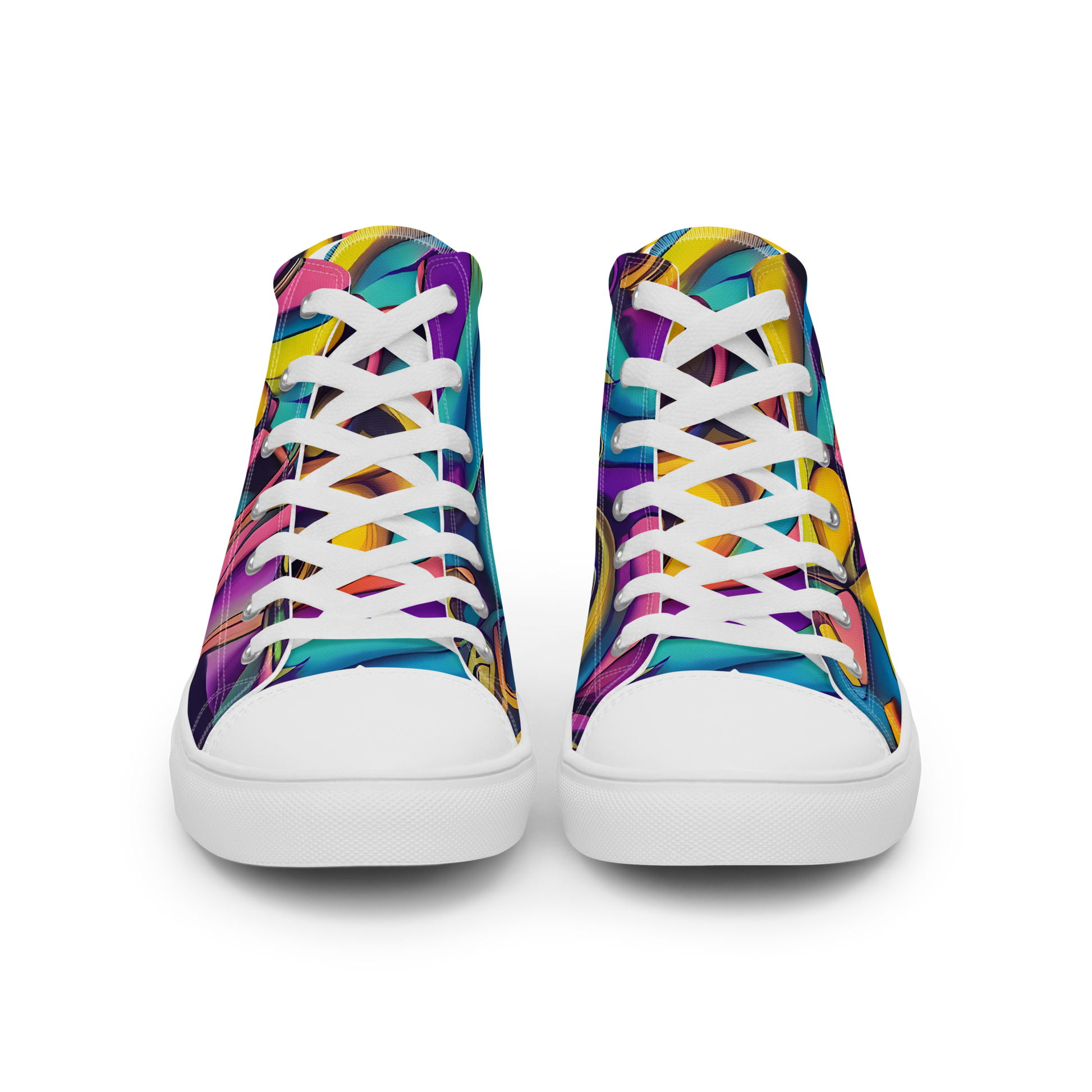 Unleash your inner artist with our Men's High Top Canvas Shoes, featuring the exclusive "Pre-Raphaelite Wave" pattern. This vibrant design merges bold yellows, deep purples, and vivid blues in an abstract symphony, capturing the essence of dreamy nostalgia and artistic rebellion. Perfect for the trendsetter who values both tradition and innovation, these shoes are your go-to for making a statement at gallery openings or summer festivals.