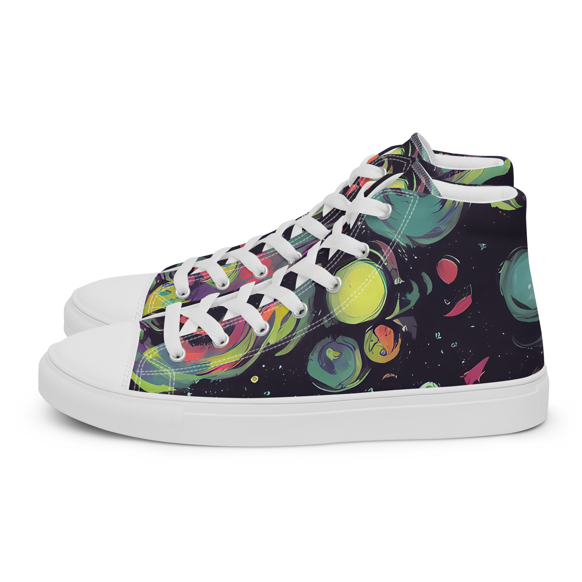 Unleash your inner artist with our Men's High Top Canvas Shoes, featuring the mesmerizing "Psychedelic Drift" pattern. These shoes are a canvas of swirling neon greens, purples, and pinks set against a cosmic backdrop, perfect for those who dare to stand out. Ideal for music festivals, avant-garde events, or simply turning heads on the street, these high tops are where fashion meets cosmic creativity.