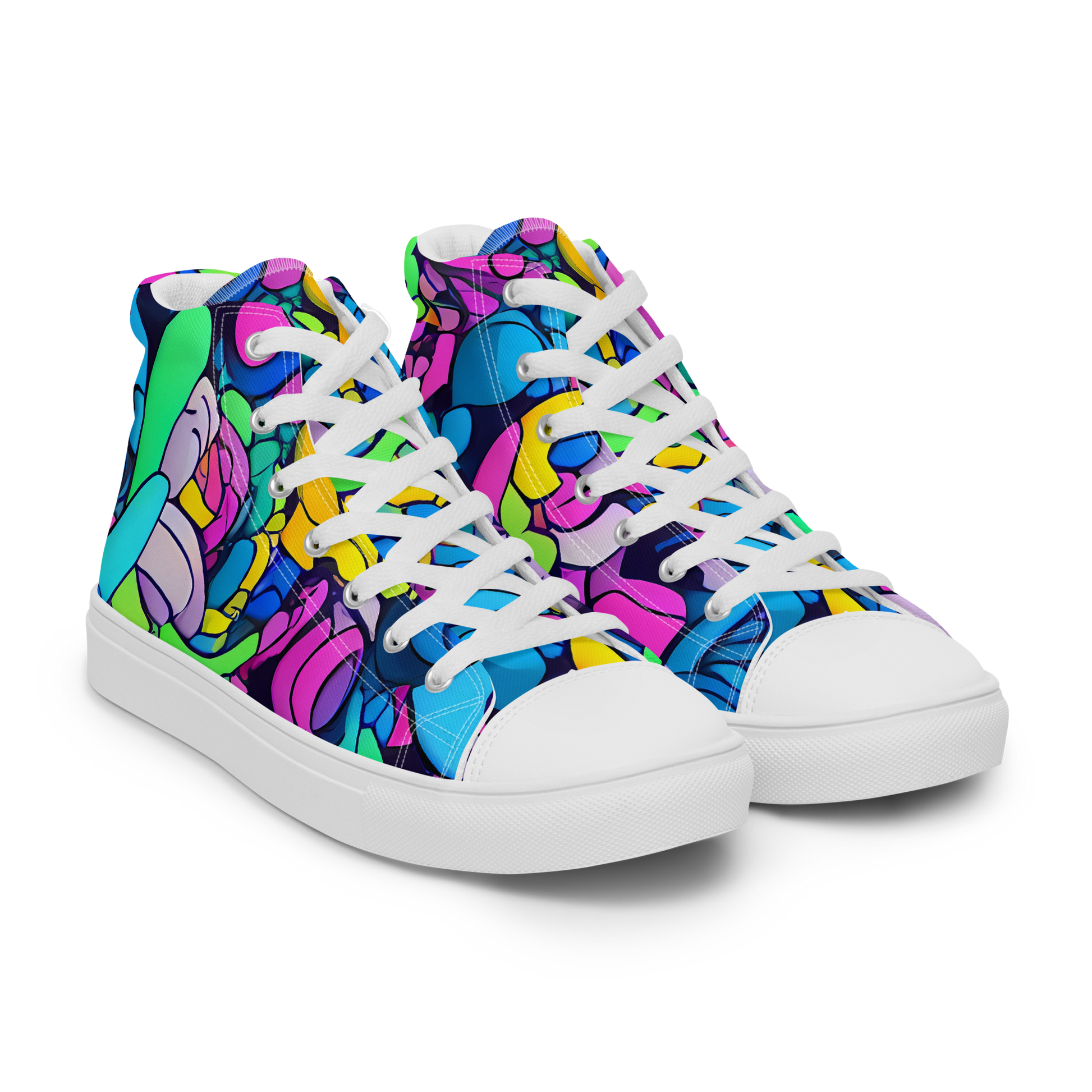 Step into a vibrant world of self-expression with our custom-designed High Top Canvas Shoes featuring the captivating "Radiant Revelation" pattern. Bursting with playful hues of pink, blue, yellow, and green, these shoes are a celebration of individuality and creativity. Each pair is a masterpiece that captures the whimsical spirit of Osamu Tezuka and the bold graphic style of Kaws, making them the perfect companion for art festivals, casual outings, or any occasion where you want to stand out. Embrace the joyful chaos and let your adventurous spirit shine with every step!