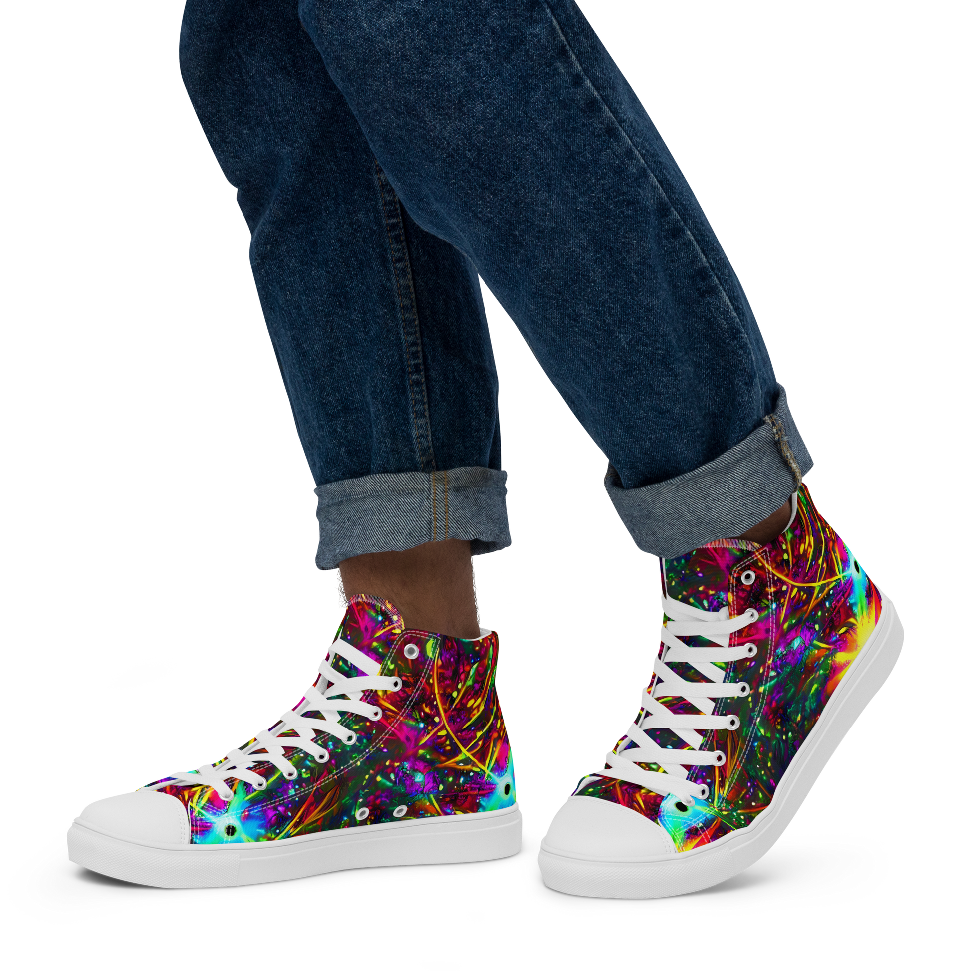 Step into the vibrant chaos of our Men's High Top Canvas Shoes, featuring the mesmerizing "Stellar Burst" pattern. These electrifying shoes burst with neon pink, electric blue, fiery orange, and radiant yellow, swirling in abstract shapes and cosmic textures that evoke dynamic energy and otherworldly wonder. Perfect for music festivals, avant-garde parties, or bold fashion statements, these high tops are designed for those who dare to stand out.