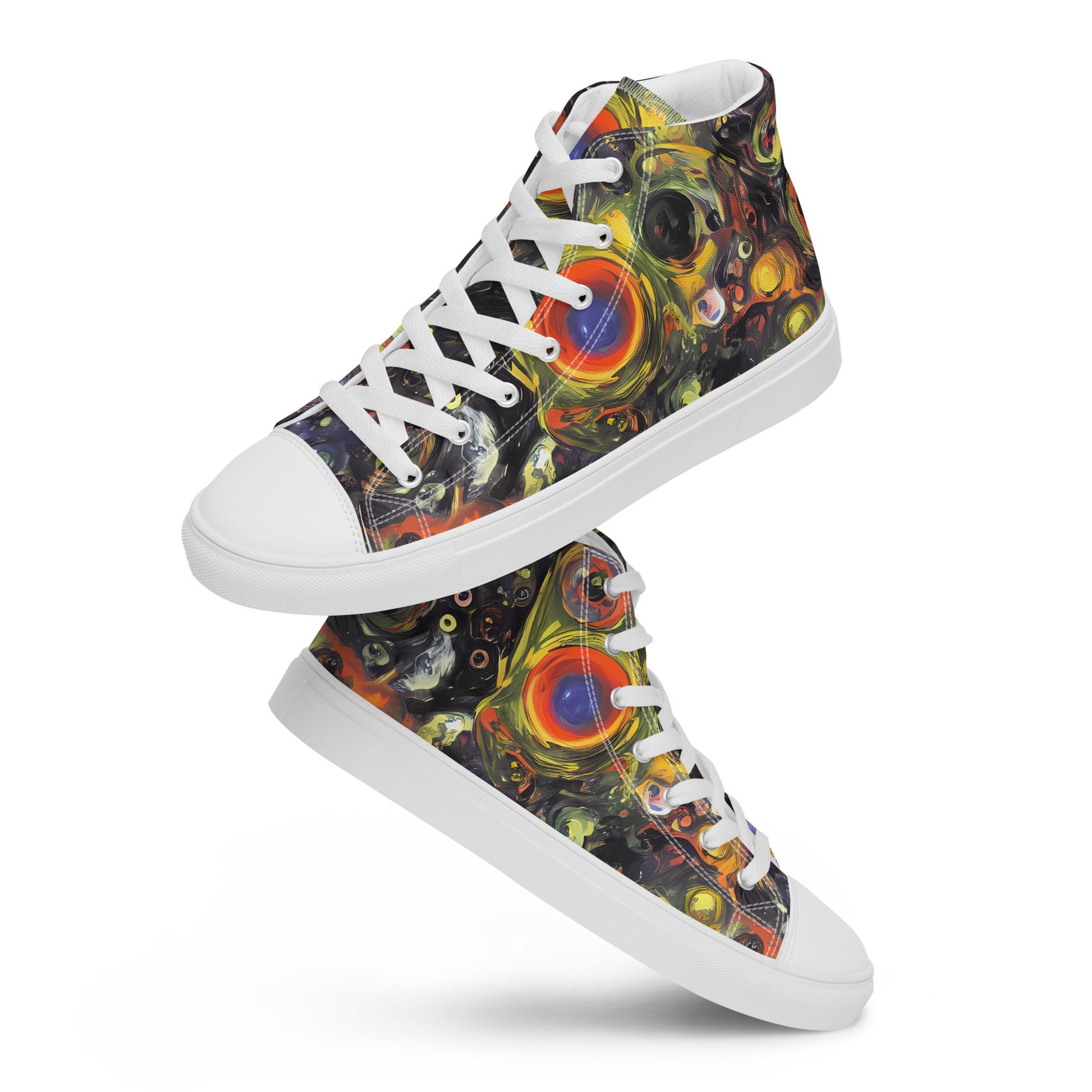 Ignite your wardrobe with the cosmic allure of our Men's High Top Canvas Shoes, featuring a hypnotic design that dances with the raw energy of the universe. Swirls of fiery orange, deep blue, and vibrant reds twist and twirl across a dark, space-like canvas, creating a visual spectacle reminiscent of distant galaxies and astronomical wonders. These high tops are a testament to the fearless, an invitation to stride into the world with the confidence of the stars themselves, ideal for those who wish to stand out at any artistic or seasonal event.