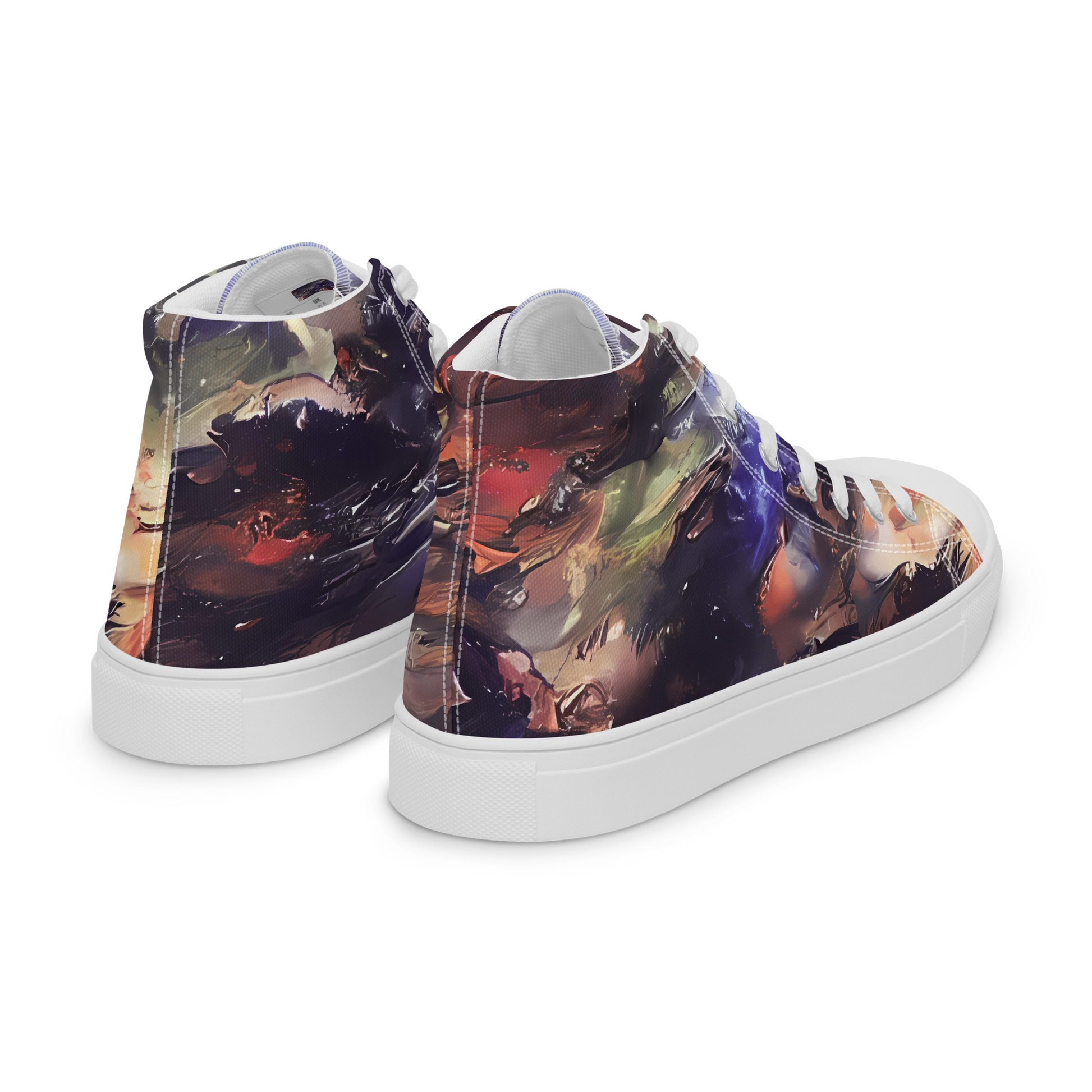 Unleash your bold, creative spirit with our Men's High Top Canvas Shoes, featuring the mesmerizing "Twisted Terra" pattern. This design is a captivating fusion of swirling earth tones and deep cosmic blues, evoking the drama of a sunset meeting a starlit night. Handcrafted for the adventurous, these shoes are perfect for turning heads at autumnal gatherings or art gallery events. Embrace the artistry and step into a world where passion meets style.