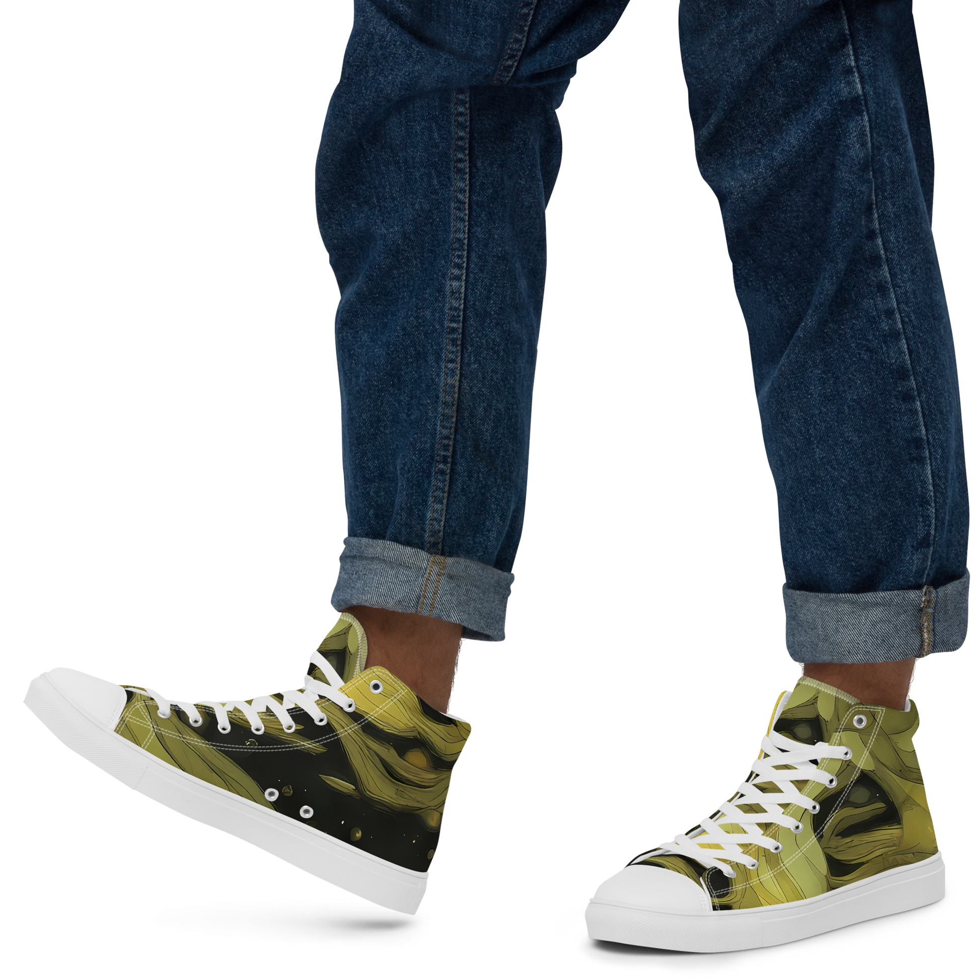 Immerse yourself in the allure of the cosmos with our Men's High Top Canvas Shoes, featuring an enchanting design that intertwines the golden whispers of a celestial dreamscape with the profound depths of a cosmic black. This mesmerizing artwork, reminiscent of the enigmatic beauty found in classic artistry but with a vibrant, modern twist, creates a statement piece that speaks to the soul. Perfect for those who desire to express their depth and originality, these shoes are a must-have for the autumn season and beyond.