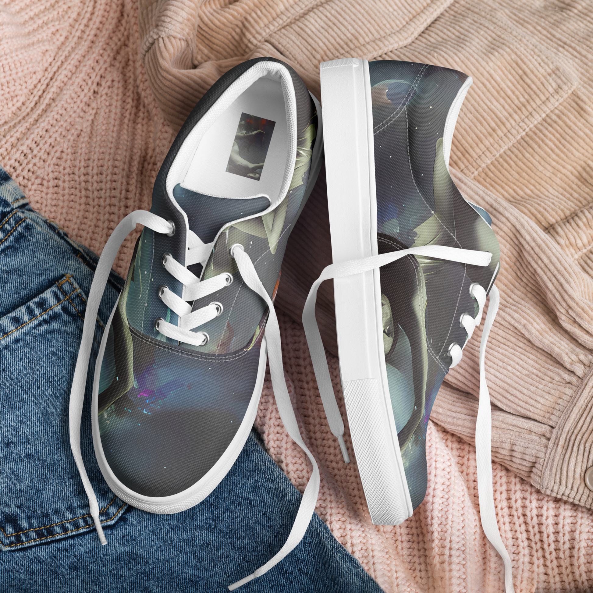 Whether you're stepping out for an evening event or seeking to add a touch of the extraordinary to your daily ensemble, our "Cosmic Dancer" canvas shoes are the epitome of dreamy sophistication. Walk with the stars!