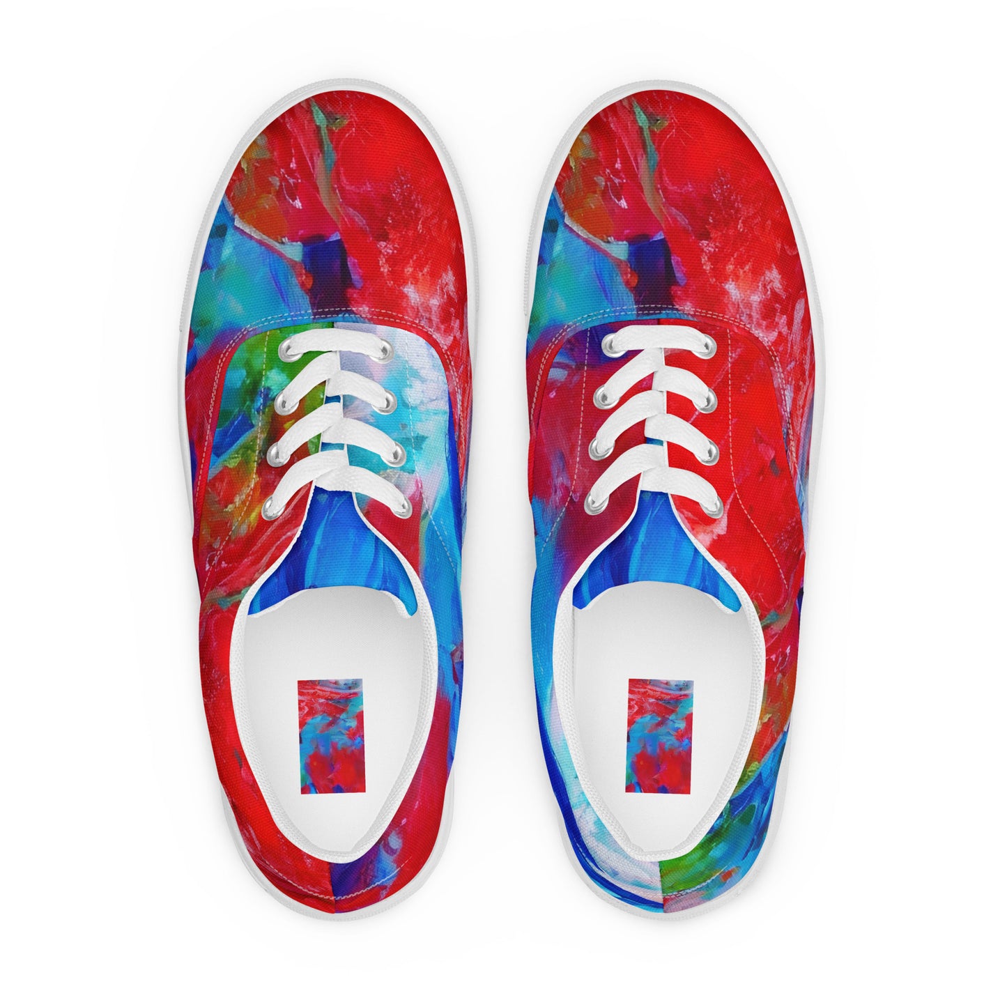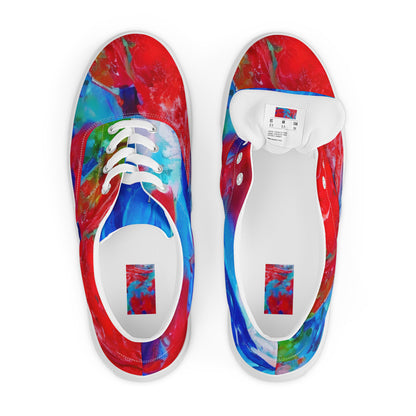 Unleash your bold spirit with our Men's Lace-Up Canvas Shoes, featuring the captivating "Eclectic Breeze" pattern! This vibrant tapestry of swirling reds, blues, and greens is a celebration of artistic chaos, making these shoes the perfect statement piece for summer festivals or art gallery openings. Step into an energetic vibe that reflects your individuality and creativity, while enjoying unmatched comfort and support with every stride.