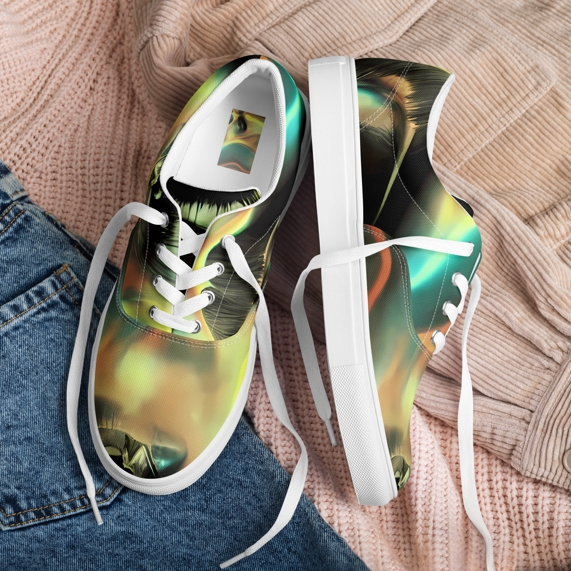 Embrace the enigma of art and comfort with our Men's Lace-Up Canvas Shoes, featuring an exclusive pattern that intertwines the abstract and the realistic. The fusion of teal, orange, and golden waves with subtle facial contours captures a timeless sophistication, perfect for those who revel in the artistry of life. These shoes are a masterpiece of style, designed to turn heads at avant-garde events or to add a touch of drama to everyday wear.
