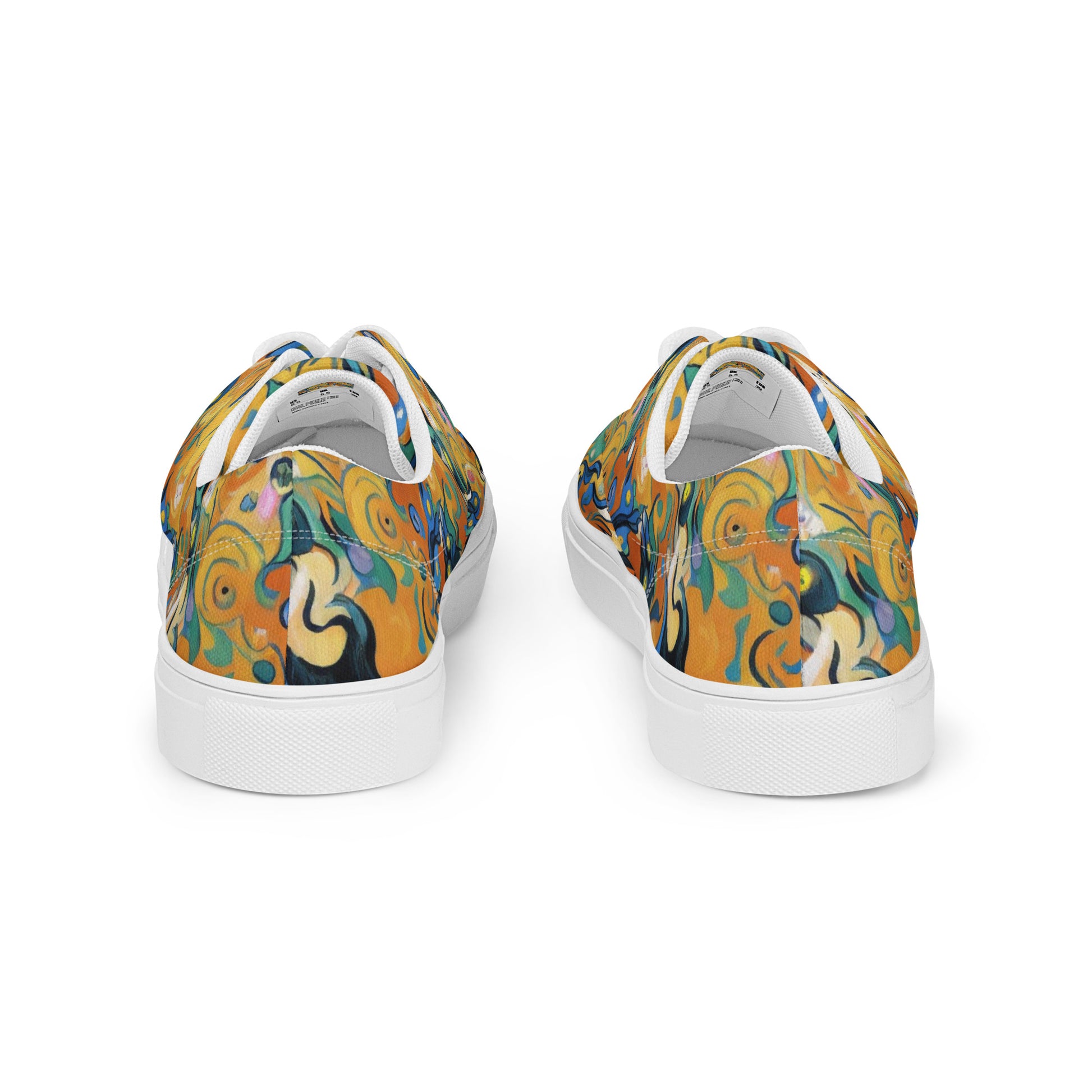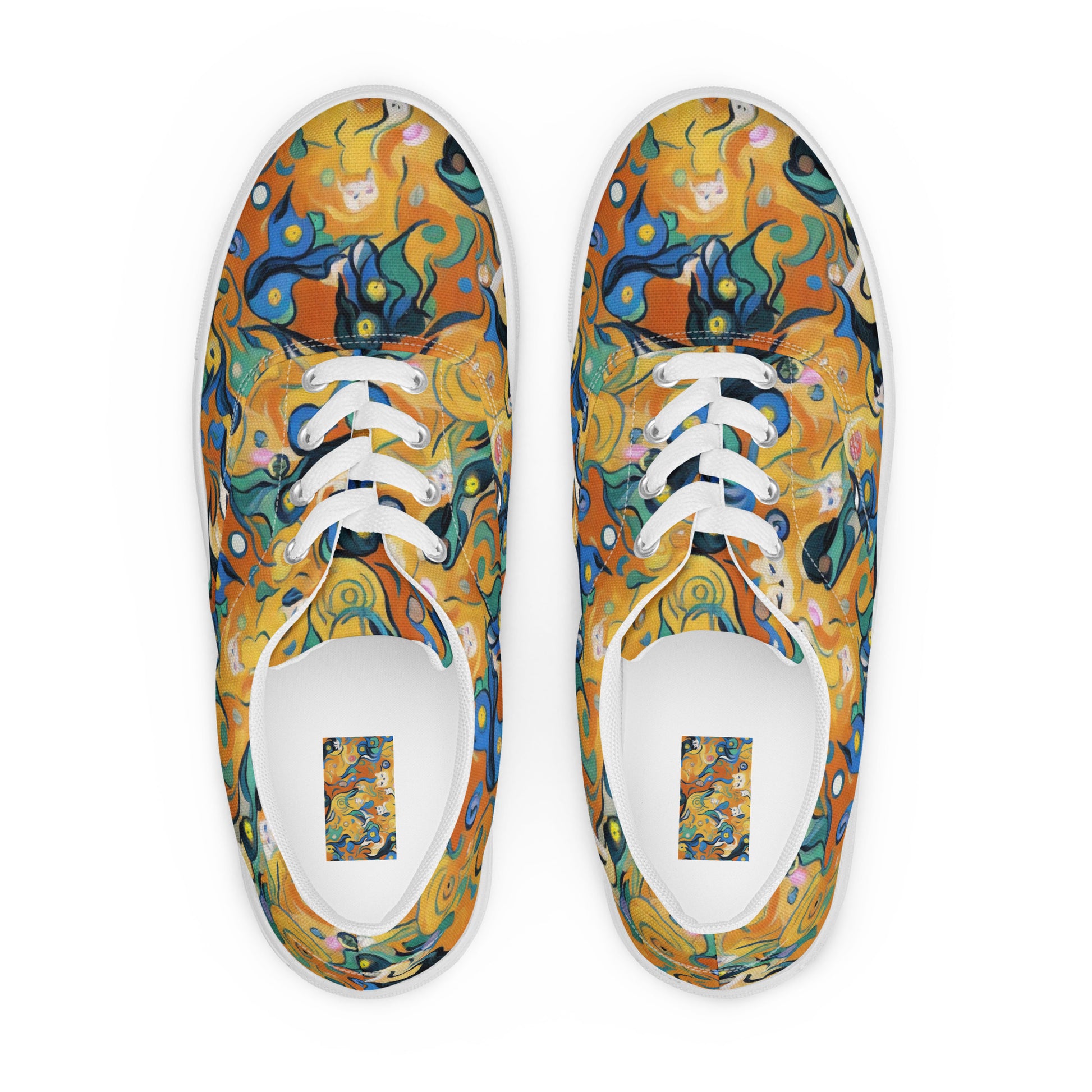 Unleash your artistic spirit with our exclusive men's lace-up canvas shoes featuring the captivating "Whimsical Feline Dance" pattern! This stunning design weaves together swirling blues, vibrant greens, and fiery oranges, reminiscent of a Van Gogh-inspired dreamscape filled with playful kittens. Perfect for those who dare to express their individuality, these shoes combine style and comfort, making them the ideal choice for art shows, eclectic soirées, or any gathering where you want to stand out.
