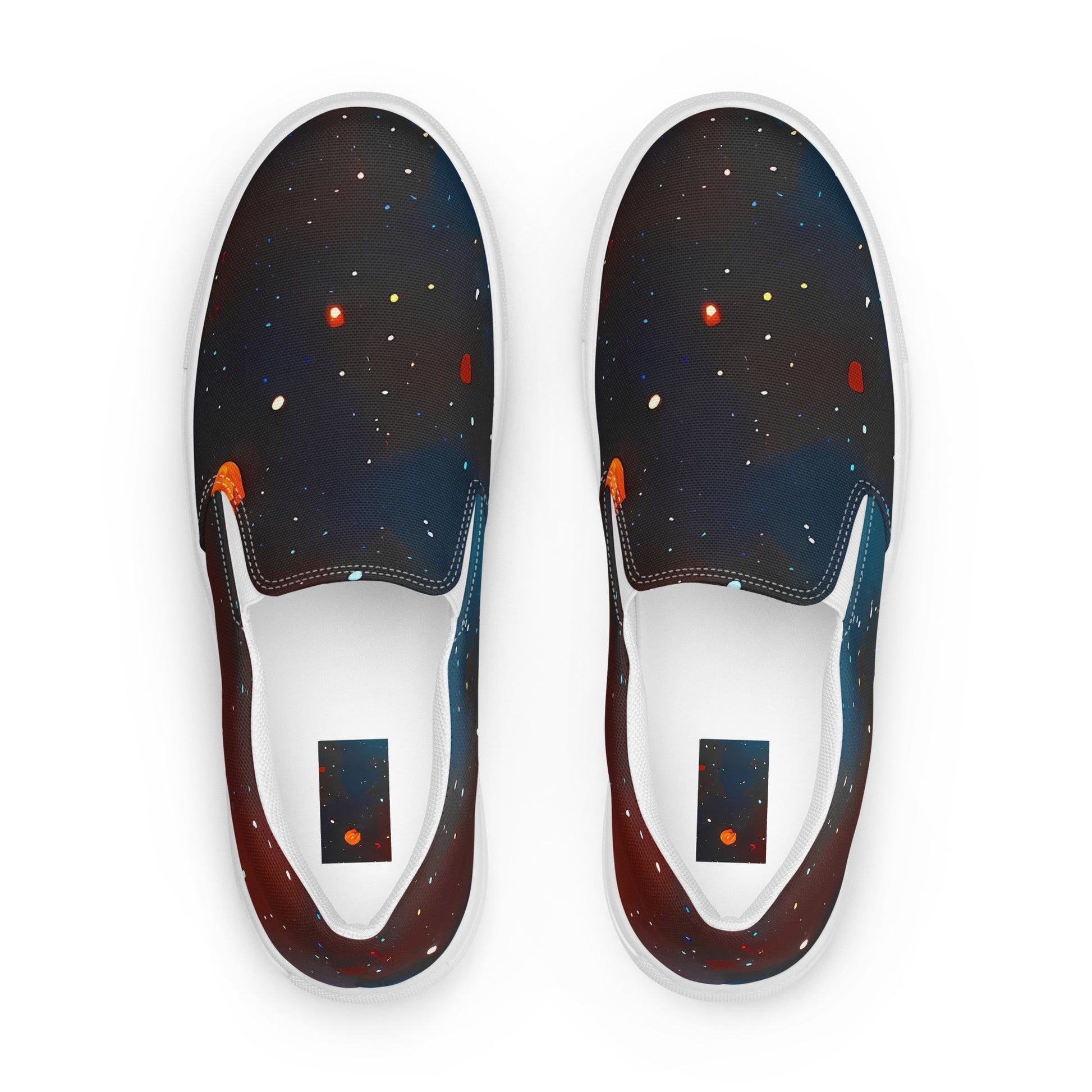Embrace the cosmos with our Men's Slip-On Canvas Shoes featuring the stunning "Celestial Vogue" pattern, a captivating blend of vibrant blues, oranges, and reds that evokes the beauty of the universe and human emotion. These bespoke shoes are not just footwear; they are a statement piece designed for the avant-garde individual who dares to express their uniqueness. Step into a world where comfort meets style, and let your feet do the talking.