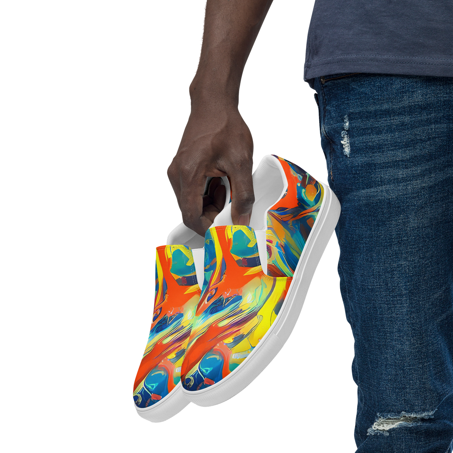Embrace the art of style with our Men's Slip-On Canvas Shoes, featuring the "Chromatic Fusion" design. Immerse your feet in a canvas of pulsating colors where the vigorous strokes of orange and blue meet the subtle whispers of yellow, forging a masterpiece that dances between the abstract and the meticulous. These shoes are not just footwear; they are a statement of passion, an ode to the spring and summer vibrancy, tailored for the expressive soul who dares to stand out at any creative gathering or art event.