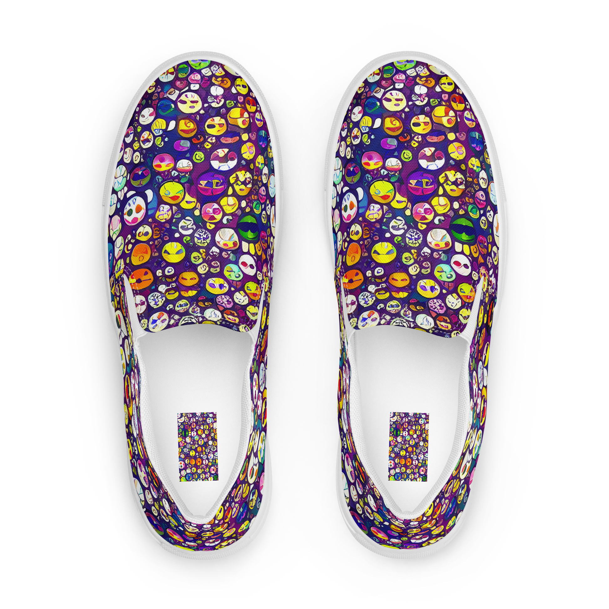 Unleash your bold personality with our Men's Slip-On Canvas Shoes, featuring the eye-catching "Mosaic Moods" pattern. This vibrant tapestry of swirling emotive faces and abstract shapes, in vivid yellows, purples, and pinks against a deep indigo backdrop, transforms every step into a celebration of style. Perfect for festival wear or a lively night out, these shoes not only ensure you stand out but also provide the ultimate comfort for all-day adventures.