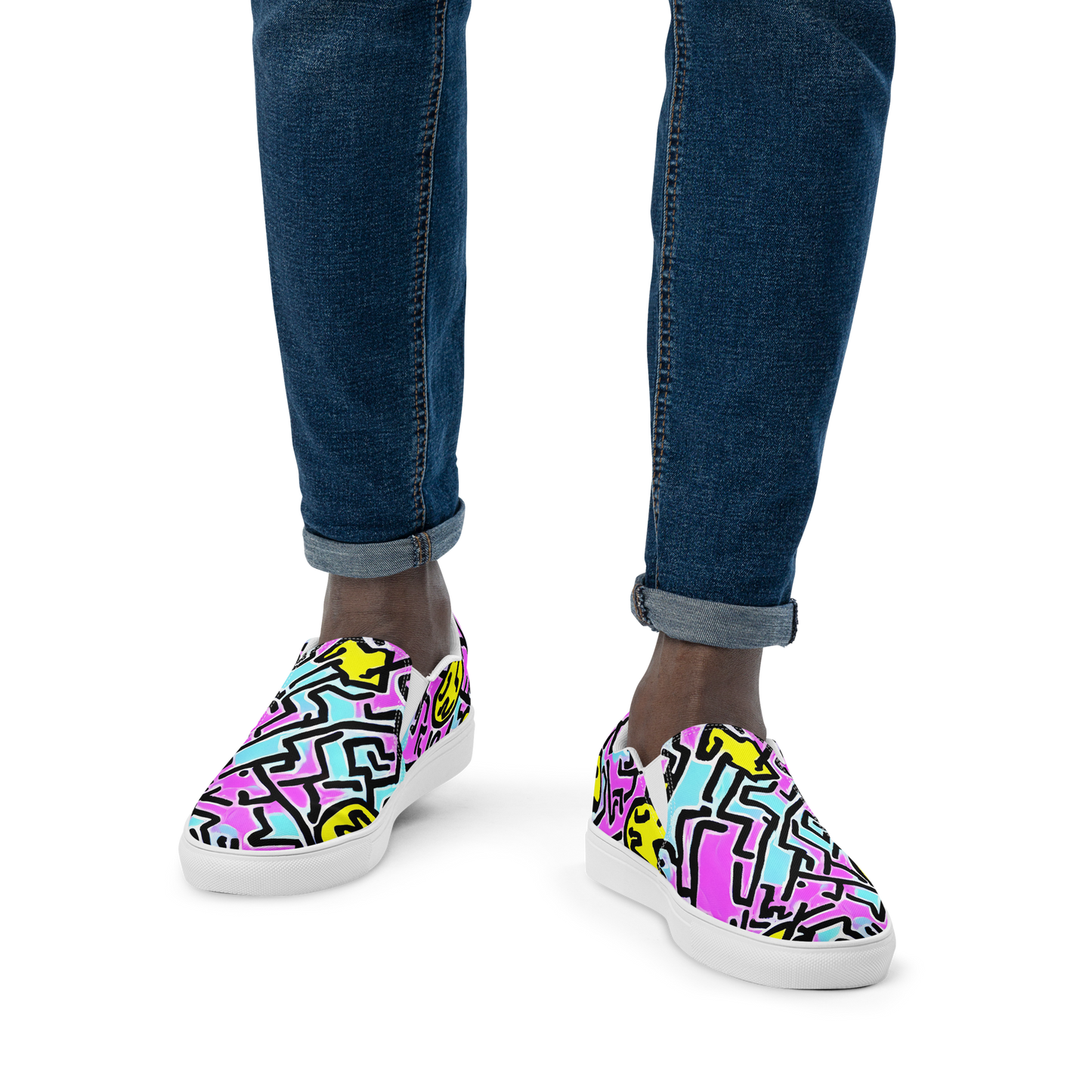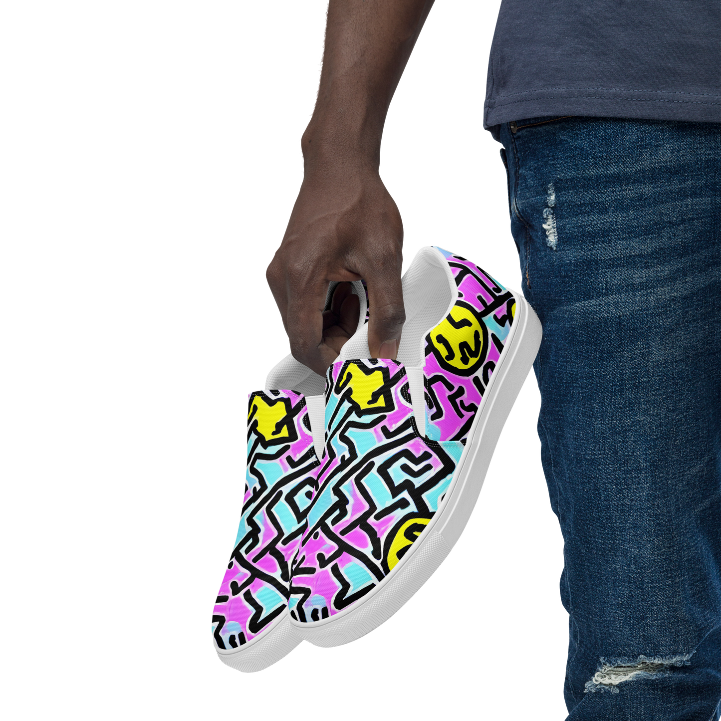 Ignite your wardrobe with a dash of audacity in our Men's Slip-On Canvas Shoes, featuring the electrifying "Punk Doodles" design. Splashed with neon pink and electric yellow scribbles on a cyan backdrop, these shoes are a canvas of rebellion, echoing the vibrant chaos of street art. They're the perfect accessory for those who dare to stand out, whether you're hitting a music festival or just adding a pop of personality to your daily attire.