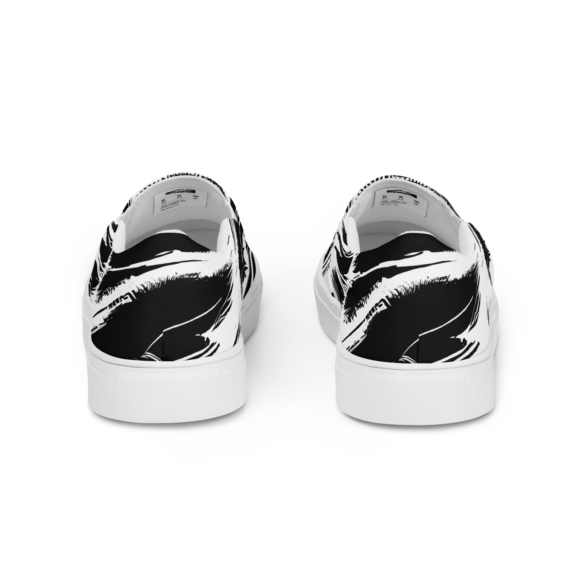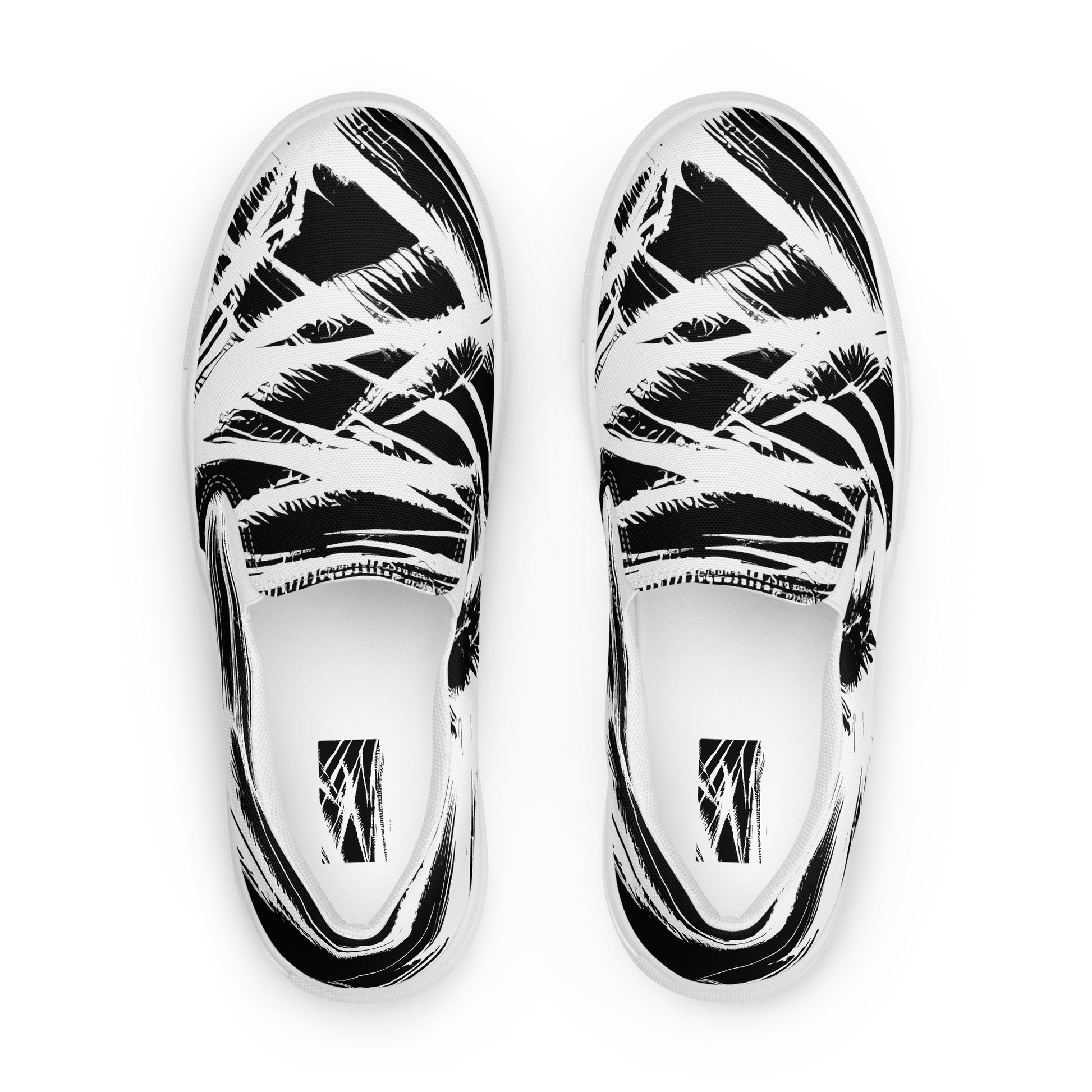 Unleash your boldness with our Men's Slip-On Canvas Shoes, featuring the striking "Silent Thunder" pattern. This unique design captures the raw energy of a storm with its dynamic black and white contrasts, making these shoes a perfect statement piece for art galleries or urban music festivals. Crafted for the daring individual who thrives on intensity, these slip-ons combine effortless style with unmatched comfort, ensuring you stand out in any crowd.