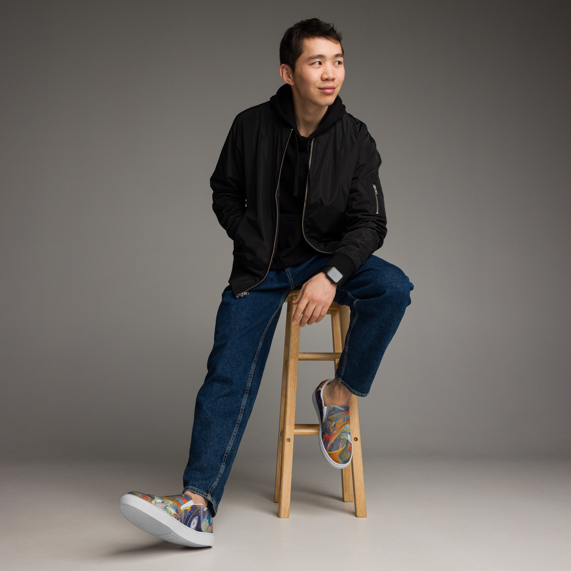 Whether you're navigating the urban landscape or exploring artistic avenues, these "Spectral Swathe" slip-ons are your ticket to a stylish, spirited journey. Capture the essence of originality and comfort with every stride!