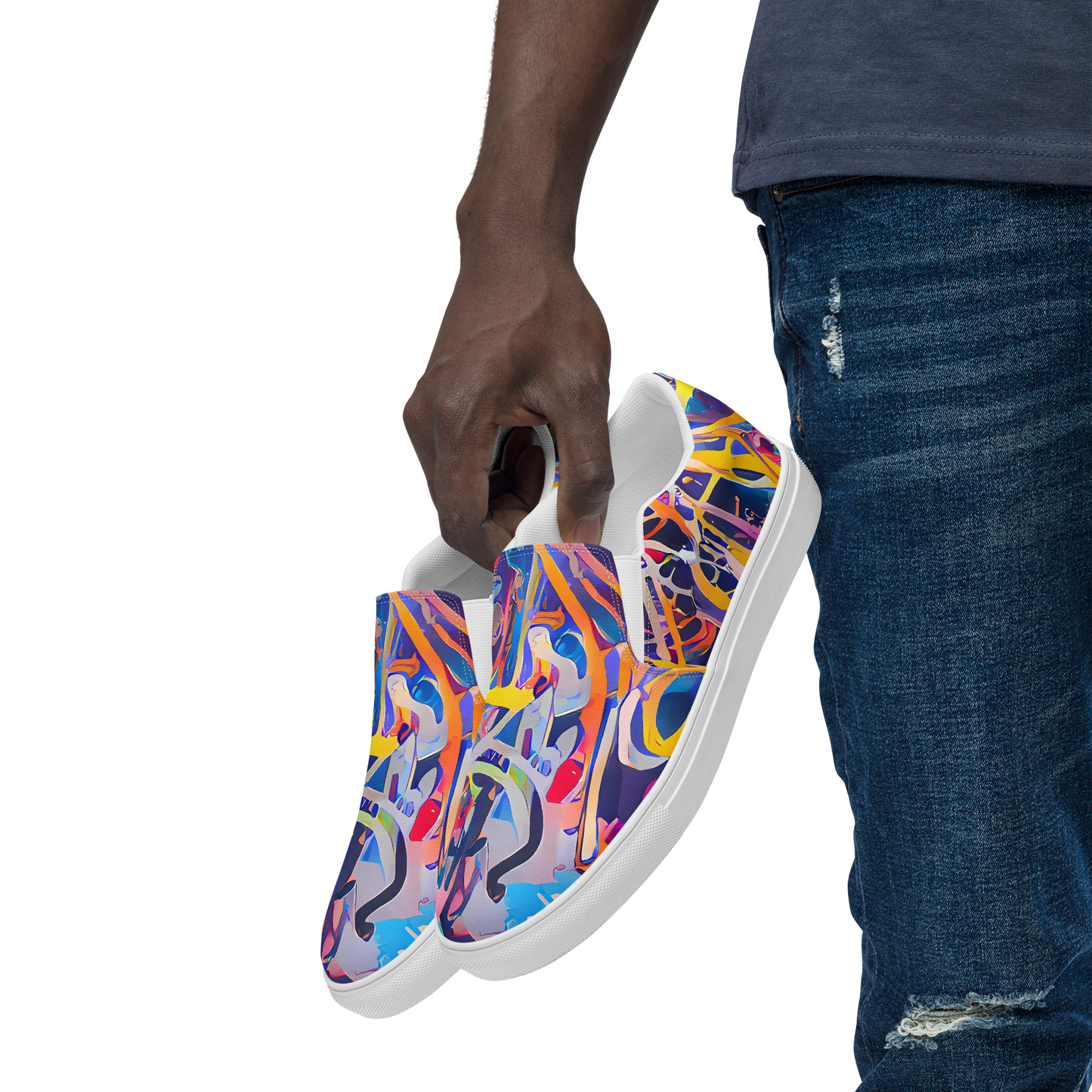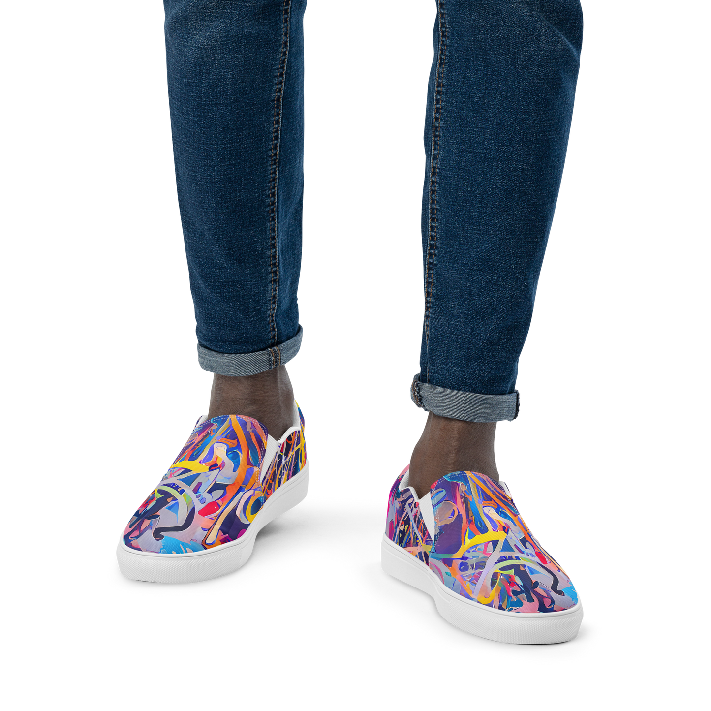 Step into a whirlwind of color and energy with our Men's Slip-On Canvas Shoes, featuring a vibrant fusion of abstract expressionism and pop art. These shoes are adorned with bold, intertwining shapes and lines in electric blues, fiery reds, playful pinks, and sunny yellows, evoking a sense of chaotic joy and dynamic movement. Perfect for making a statement at art gallery openings, music festivals, or lively summer gatherings, these slip-ons are designed for the creative and confident individual looking to elevate their style.