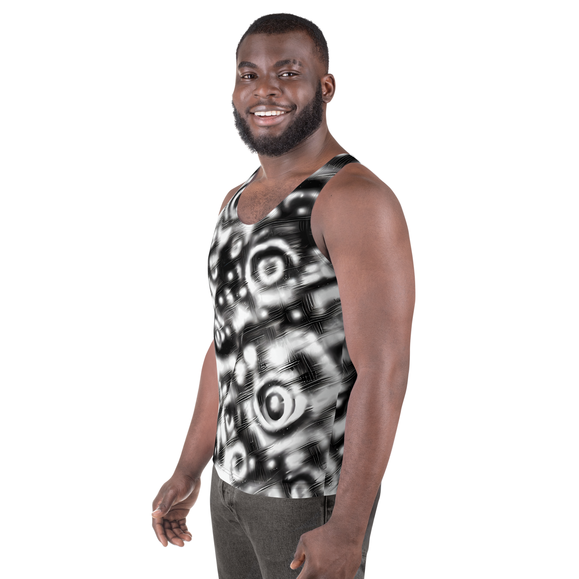 Step into the realm of abstract elegance with our tank top, artfully adorned with a hypnotic swirl of monochromatic spirals. This tank top captures the essence of movement and depth through a dance of light and shadow, offering a sophisticated black and white palette that exudes classic finesse. Perfect for the art enthusiast with a keen eye for the intricacies of fine art, this piece is a tribute to timeless style, making it a must-have for any occasion.