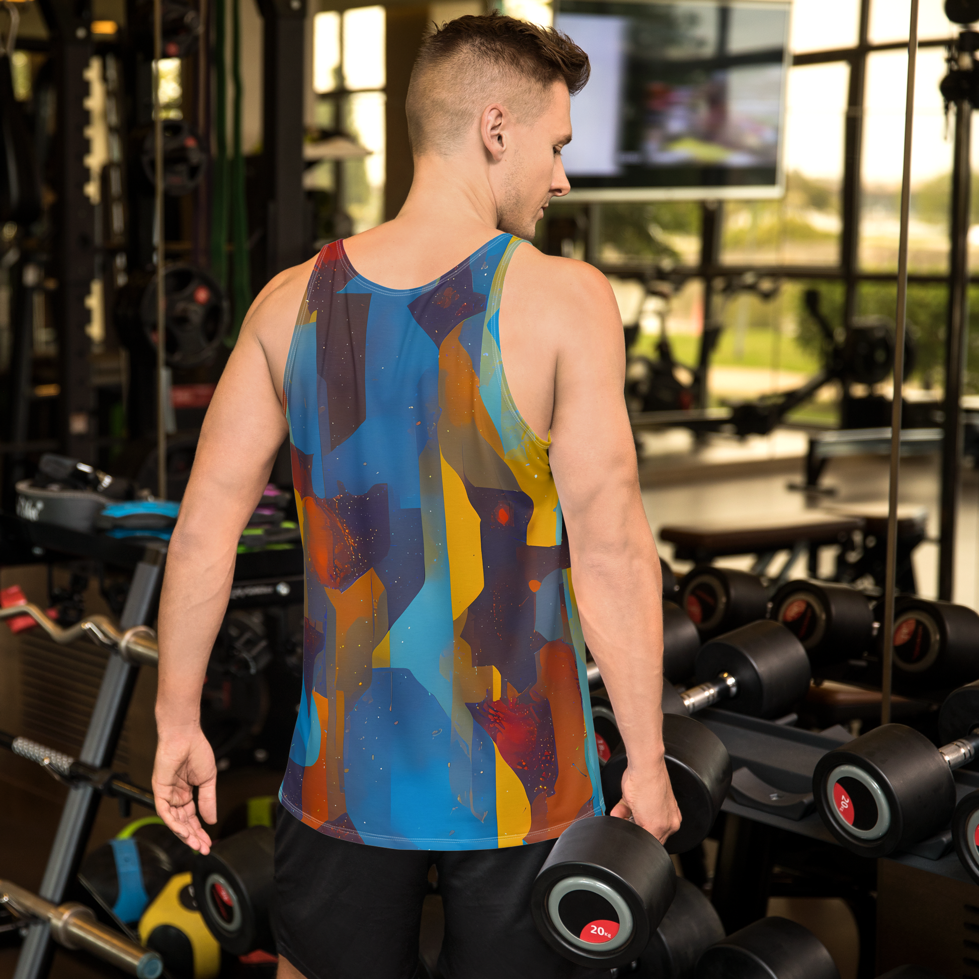 - 🖌️ Artistically Inspired: The "Cubist Dusk" pattern makes each tank top a statement piece, as unique as your personal style.