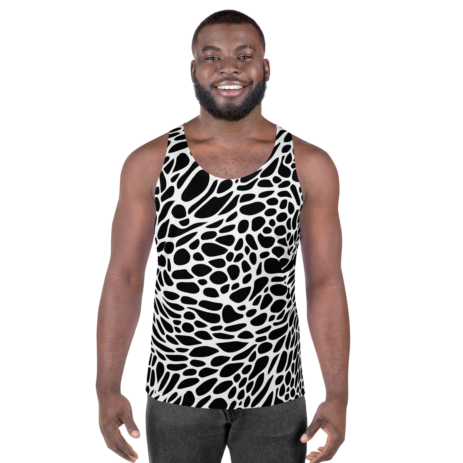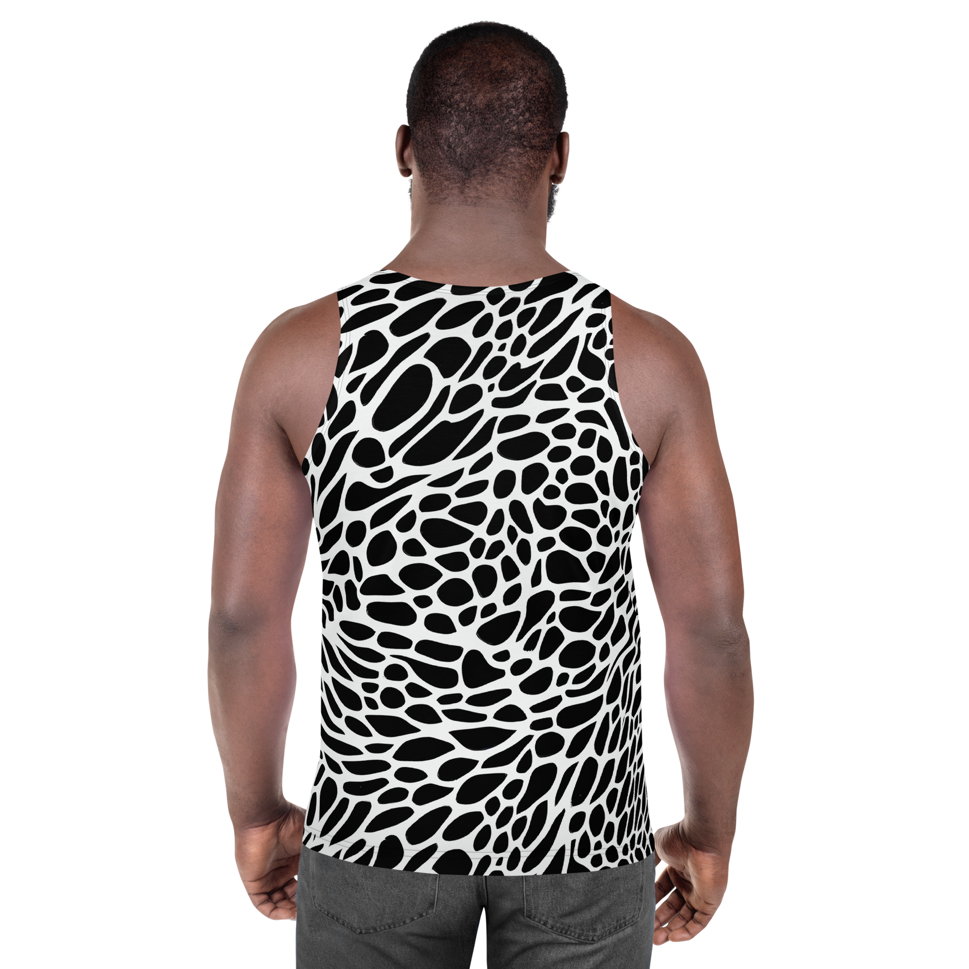 Unleash your inner style icon with our AI-designed Men's Tank Top, featuring a striking black and white pattern of organic, flowing shapes that evoke bold sophistication and edgy elegance. This design, inspired by the provocative and stylish essence of renowned artists, is perfect for evening events, art gallery openings, and fashion-forward gatherings. Ideal for those with a daring and confident personality, this tank top combines classic monochrome with a contemporary twist, making it a must-have for the fall and winter seasons.