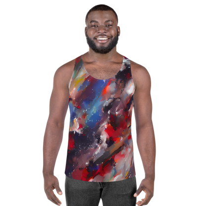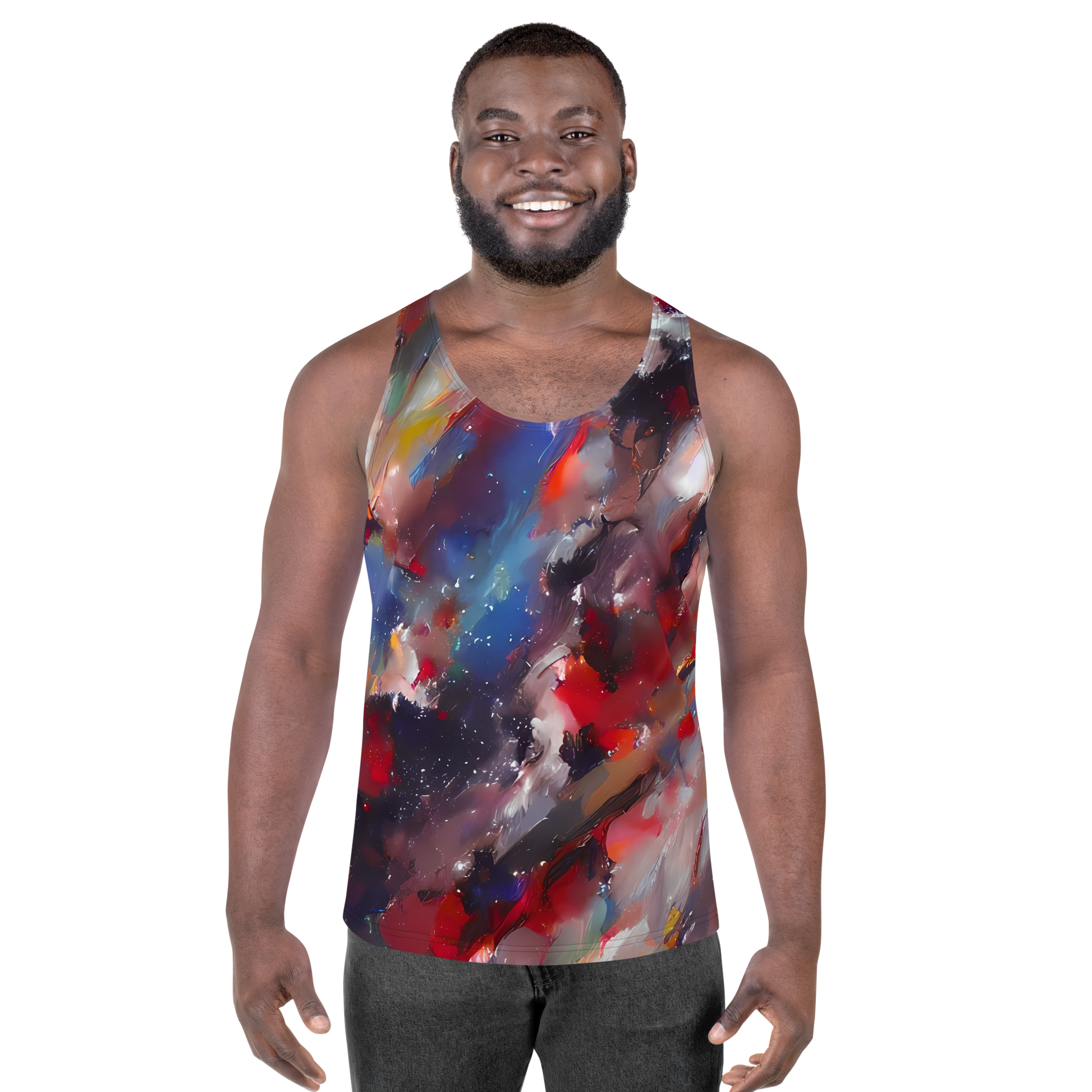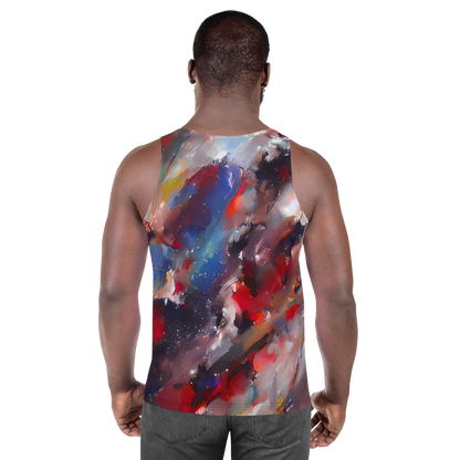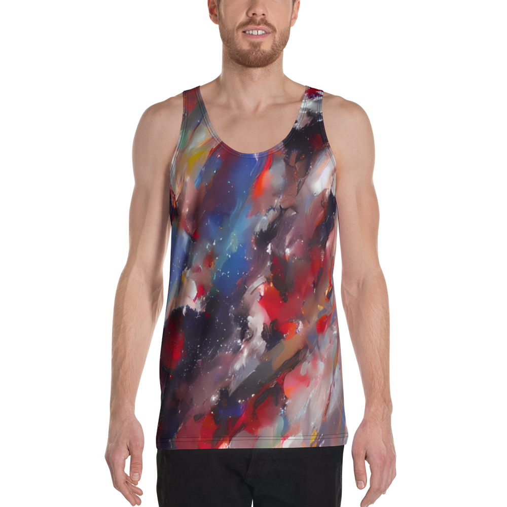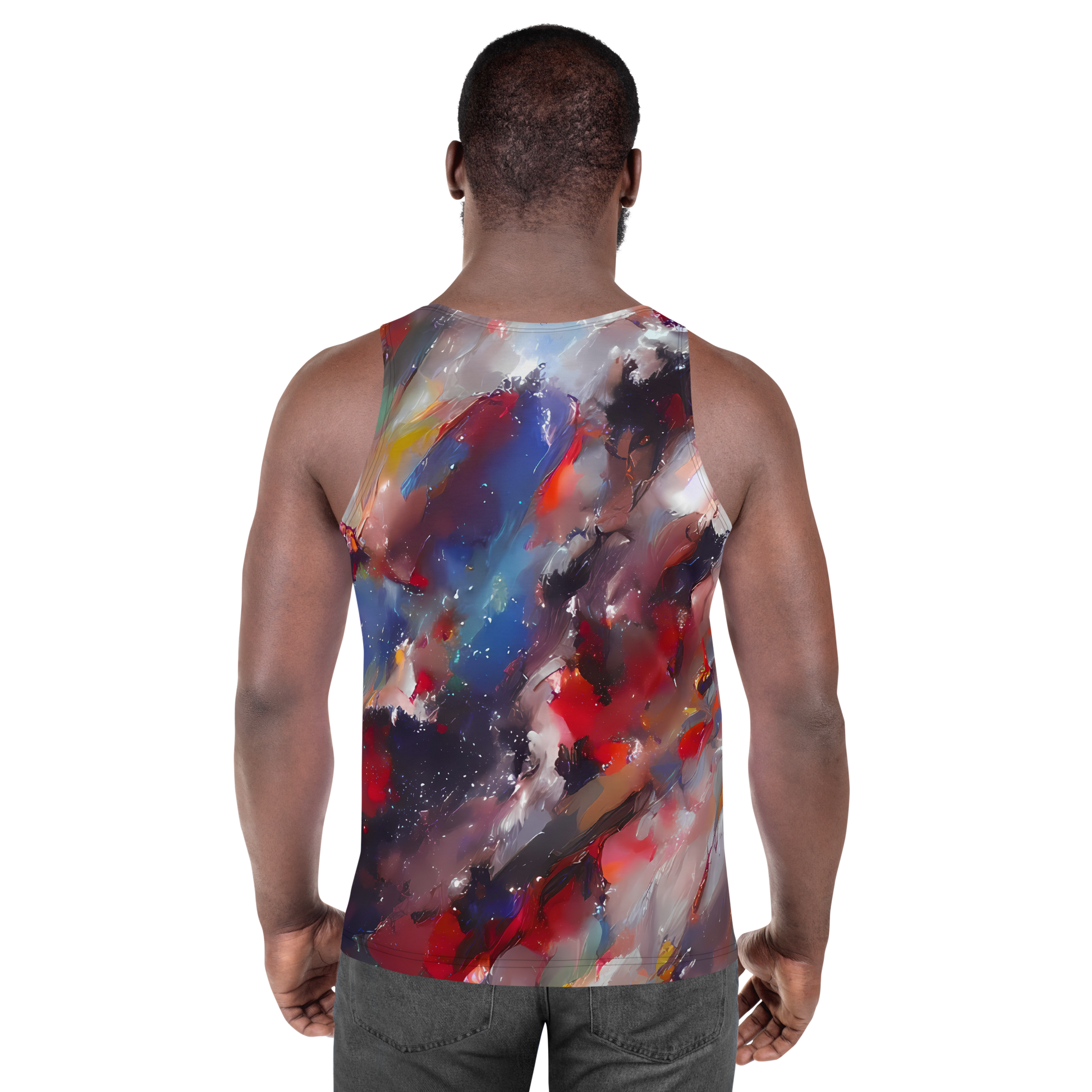 Unleash the artist within and make a bold statement with our Men's Tank Top adorned in the "Passionate Brush" pattern. Inspired by the fervent emotion of Andre Kohn and Cecily Brown's works, this tank top features a vibrant dance of rich reds, deep blues, and warm neutrals. Dynamic strokes and energetic splashes across the fabric create a luxurious depth that captivates the eye and invites touch. Perfect for the bold, creative spirit, this tank top is your canvas for self-expression at art events, autumnal gatherings, or any setting where passion and flair are the guests of honor.