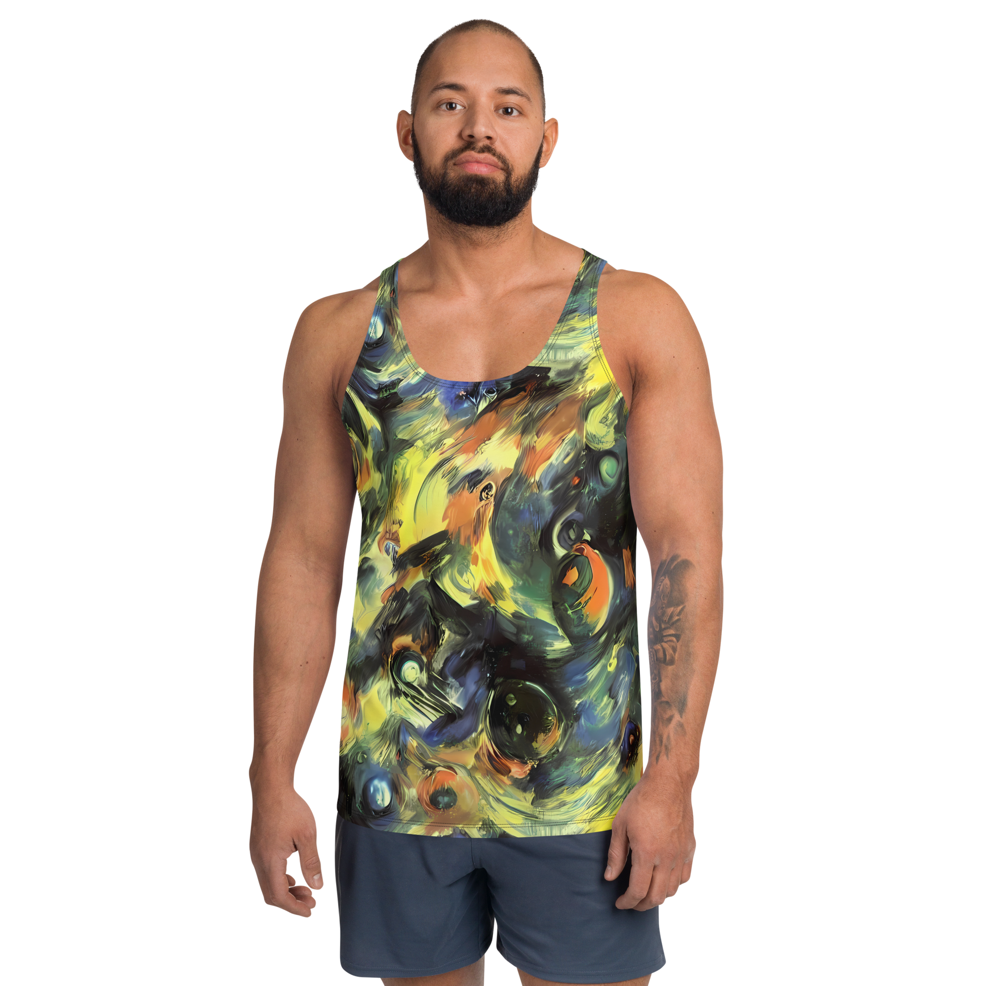 Elevate your style with our Men's Tank Top featuring the exclusive "Seve Swirl" pattern—a dynamic blend of rich oranges, deep blues, and earthy greens that brings an artistic flair to your wardrobe. This tank top is perfect for those who want to make a bold statement with its emotive brushstroke textures that evoke movement and energy. Designed for the adventurous spirit, it's ideal for creative gatherings, art events, or chic urban settings in transitional seasons like spring and fall. Experience unmatched comfort and style with a piece that is as unique as you are!