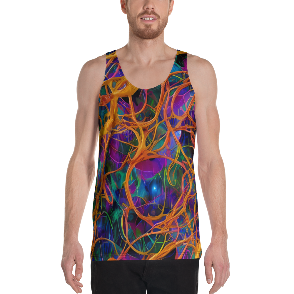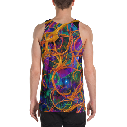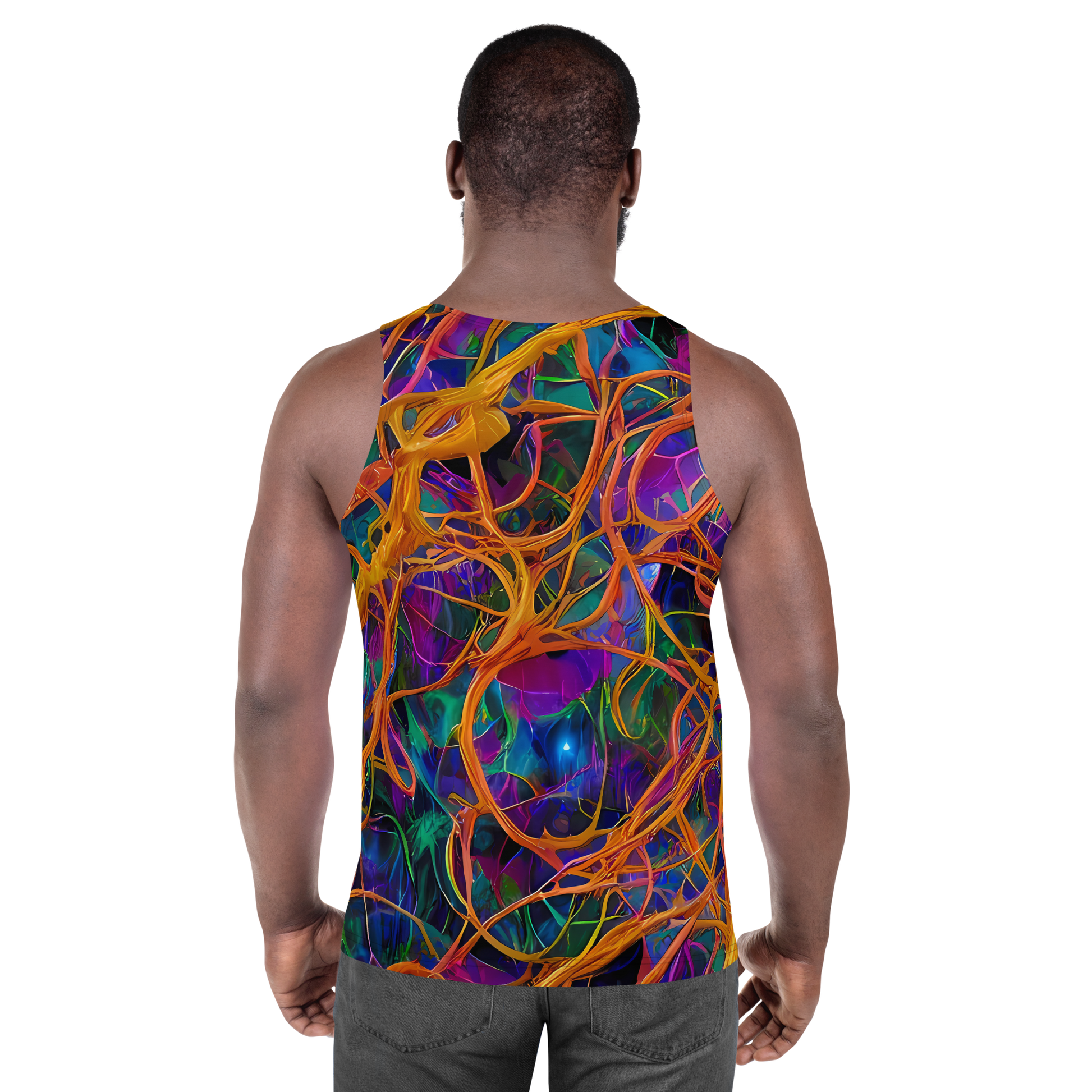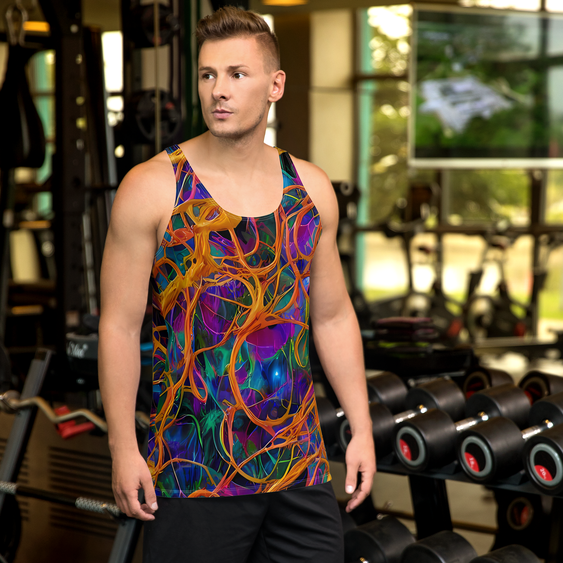 Unleash the artist within and make a statement with our Men's Tank Top featuring the exclusive "Spectral Weave" pattern. Electric orange strands dance over a mesmerizing deep blue and purple backdrop, crafting a tank top that pulses with life and vibrancy. Perfect for the bold and creative spirit, this piece guarantees you'll be the embodiment of avant-garde style during the spring and summer festivities.